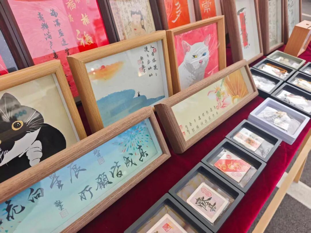 文创展览区热闹非凡,书法、绘画、拓印、漆扇制作等手工活动吸引众多残疾人参与。