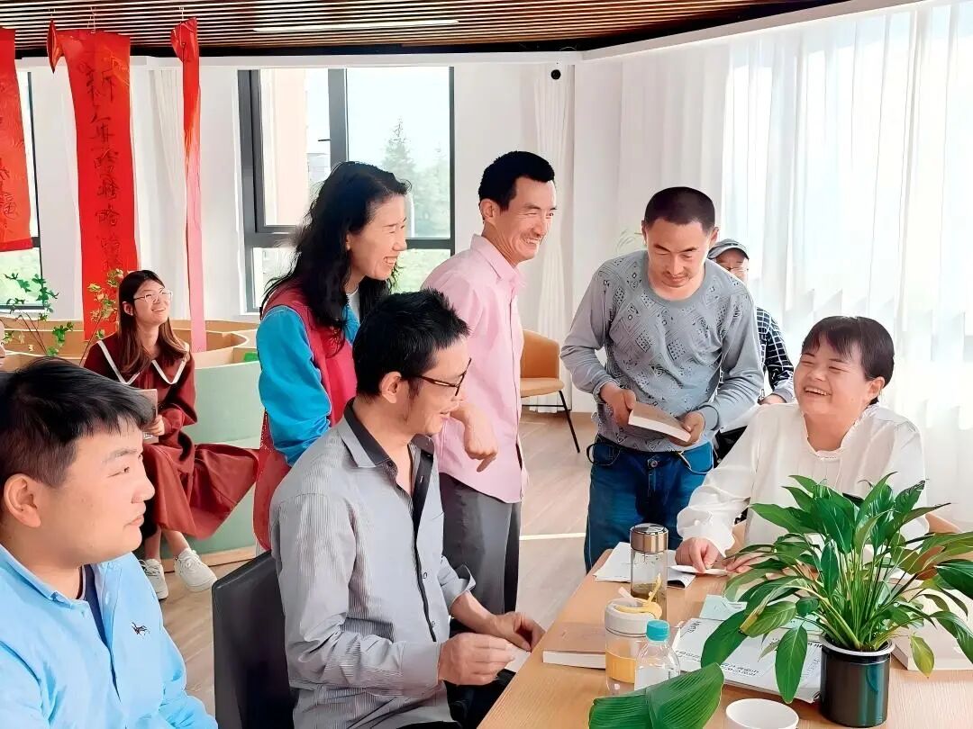 ▲江苏省南京市高淳区残联打造隙光书局,在提供无障碍文化服务的同时,推动残疾人融入社会,探索残疾人文艺人才培养路径,使阅读与写作成为残疾人自我表达的重要方式。图为听力残疾人作家吴瑕(右一)走进隙光书局,分享创作心得。(图片由南京市高淳区残联提供)