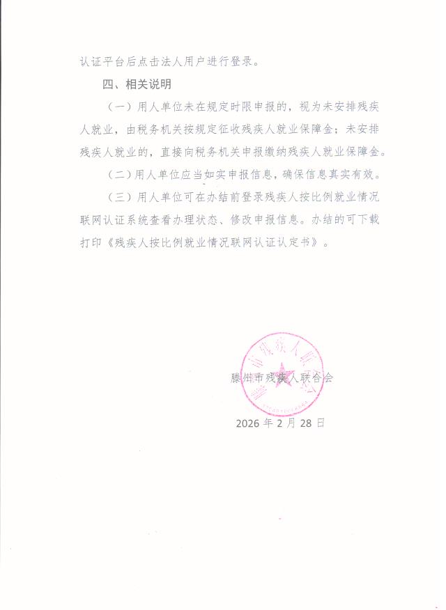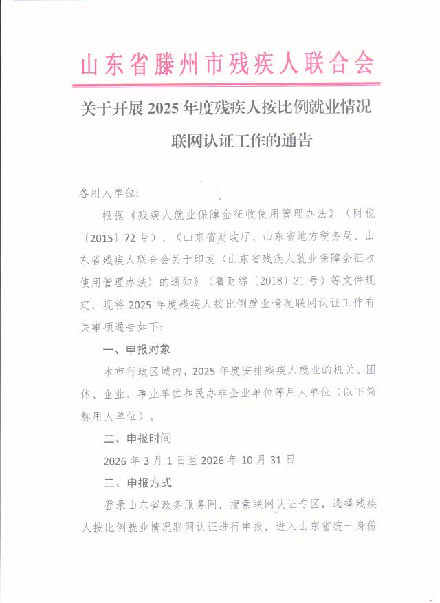 关于开展2025年度残疾人按比例就业情况联网认证工作的通告