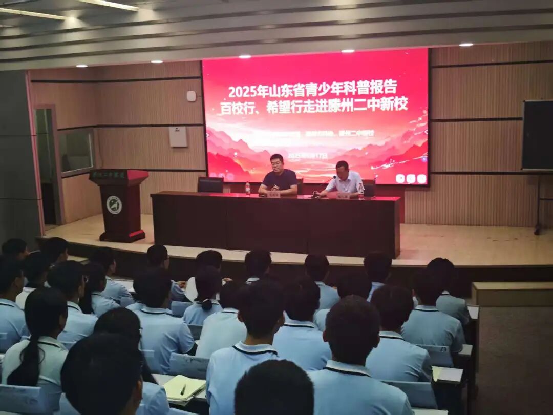 9月17日,2025年山东省青少年科普报告百校行、希望行活动在滕州市集中开展,10所中小学的千余名师生现场聆听科普盛宴,近距离感受科学魅力。