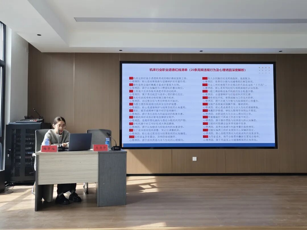 培训班上,枣庄工程技师学院专职思政教师梅梦瑶作了《“守规”到“修心”的机床行业职业道德》专题辅导报告。报告紧密结合机床行业特点,从质量意识、安全生产、技能创新与职业发展等多个维度进行了深入浅出的讲解,引导职工立足岗位,思考如何将精益求精的工匠精神融入日常工作的每一个环节,对提升一线员工的综合素养、培育质量文化、提升企业核心竞争力起到了积极的助推作用。
