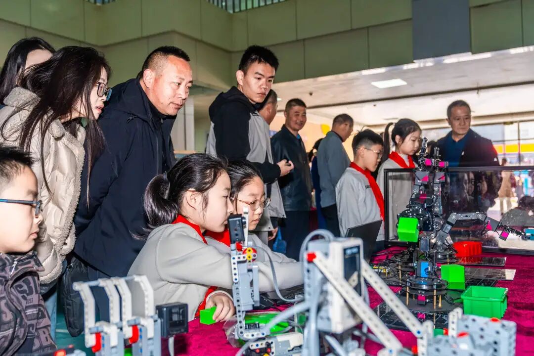 开幕式后,系列精彩活动同步开展。来自全市近100个参展单位,围绕“创新创意类”“人工智能演示类”“科技小制作类”“科普宣传类”四大主题搭建展台。学生们化身“小小科学家”,自信地讲解智能垃圾分类机器人、太阳能小车、3D打印模型、生态循环系统等作品的设计思路与技术原理,充分彰显了青少年的创新思维与实践能力。