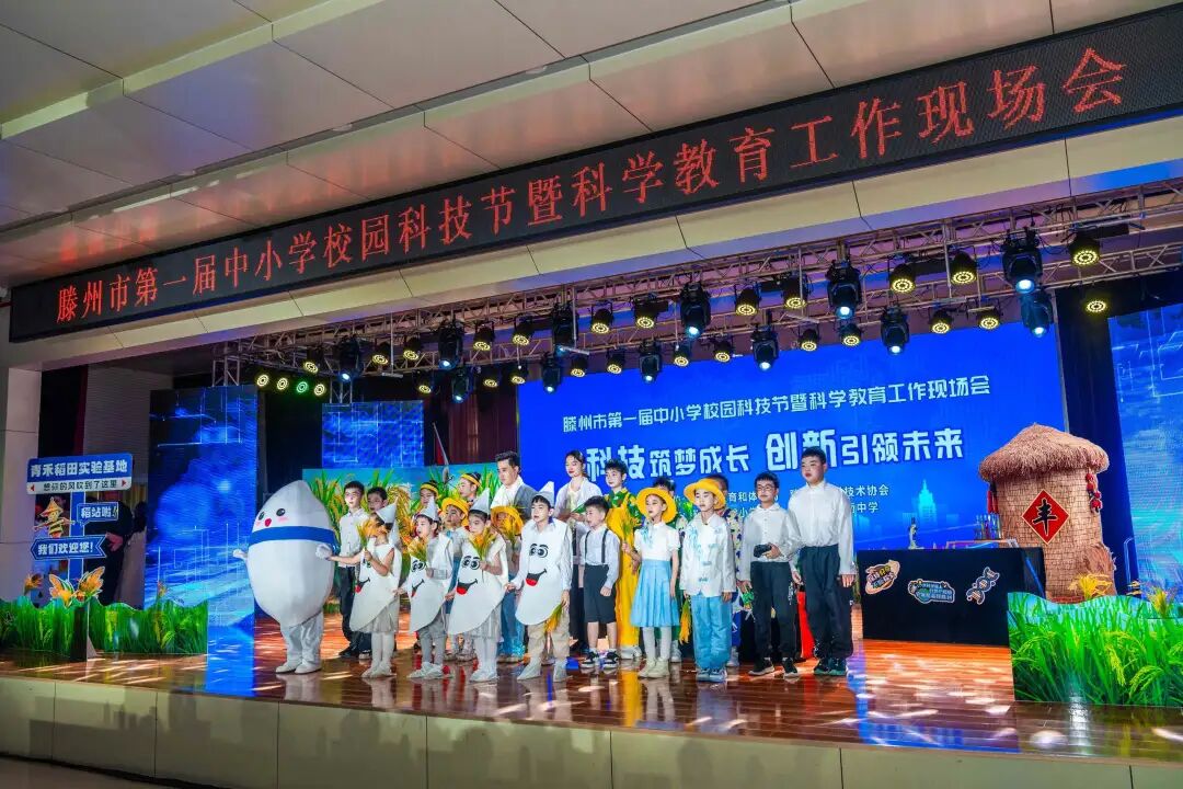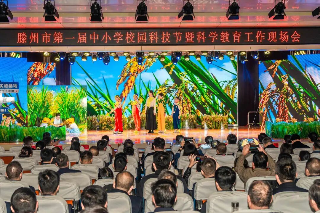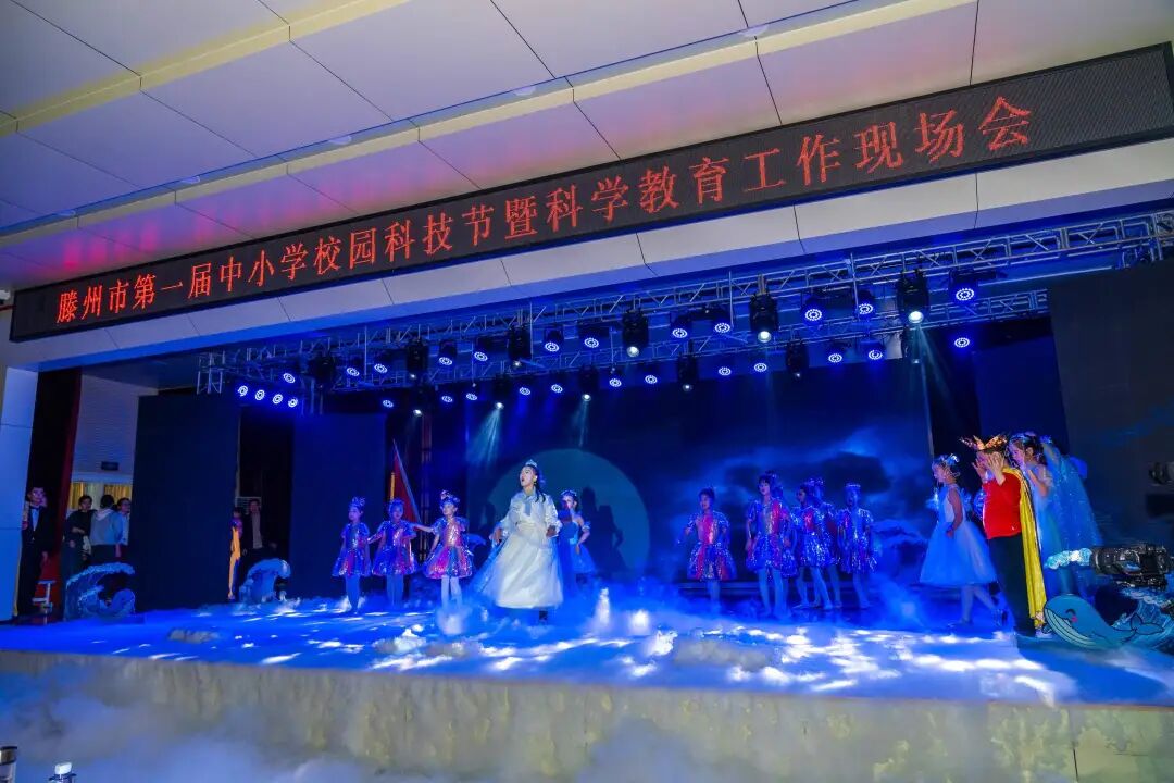 随后,与会领导共同按下启动按钮。市实验小学和滕南中学师生带来的科普剧展演,以艺术与科学融合的创意形式,生动展现了青少年对科技探索的热忱,赢得现场阵阵掌声。
