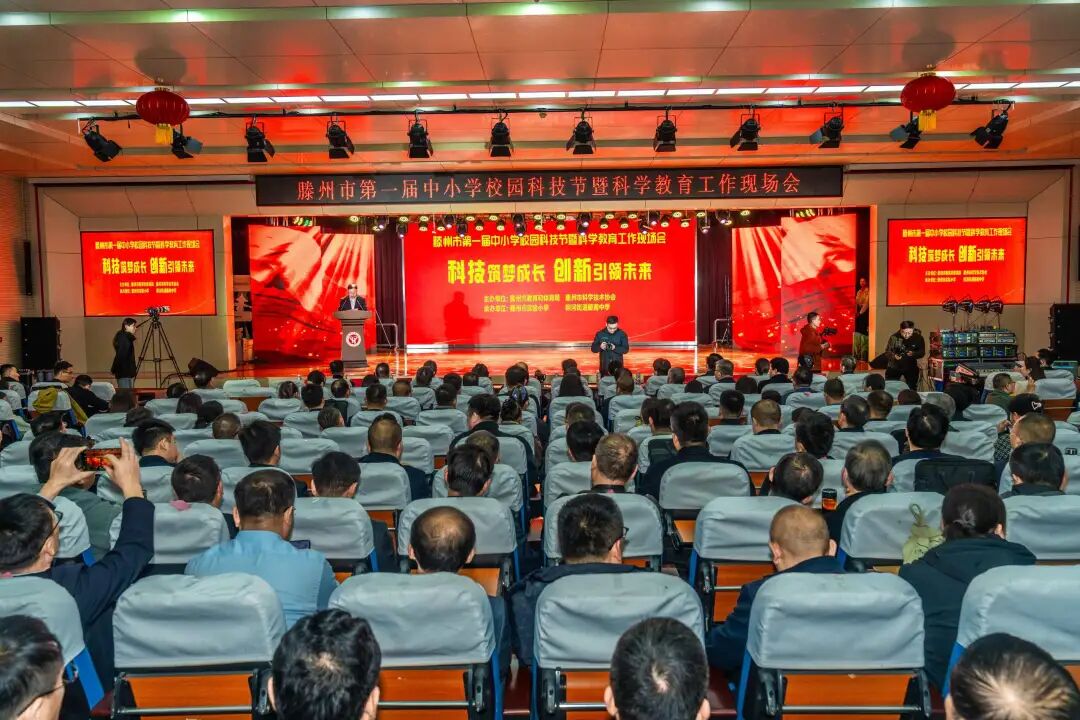 11月5日,由滕州市教育和体育局、市科学技术协会联合主办的第一届中小学校园科技节暨科学教育工作现场会,在市实验小学大同校区和荆河街道滕南中学正式拉开帷幕。枣庄市科协党组成员、副主席李亚娟,枣庄市教育局党组成员、总督学史玉光,枣庄市科技馆馆长孔丽,枣庄市教科院教育信息中心主任孔杰应邀出席活动。滕州市委常委、宣传部部长、市委教育工委书记张晓翠,市人大常委会副主任孔凡华,市政府副市长刘琳,市政协副主席单金凤,市关工委副主任杨作志,市老科协副会长韩业河,市科协主席赵联喜、副主席李树军出席本次活动。市委教育工委常务副书记、市教体局党组书记、局长李利华主持开幕式。