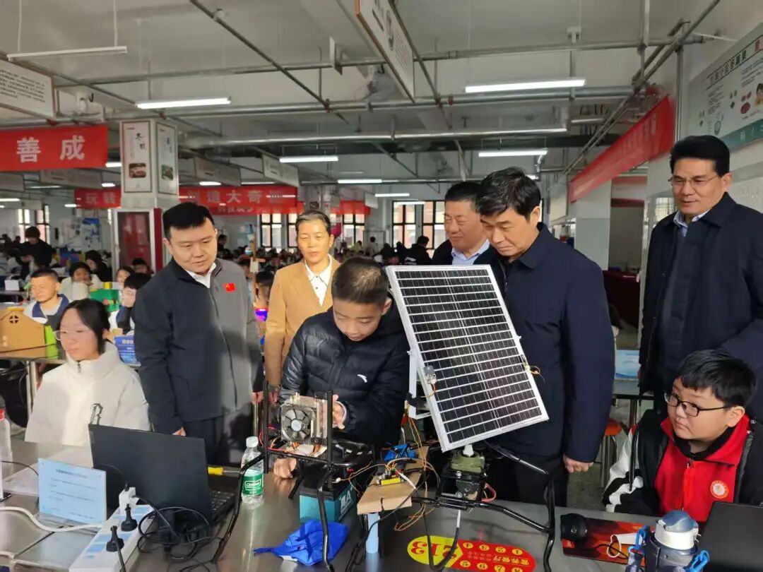 12月9日,由滕州市科学技术协会与滕州市教育和体育局联合主办的2025年滕州市青少年科技创新大赛现场展评活动,在北辛中学陶山路校区、实验小学陶山路校区顺利举行。市科协党组书记、主席赵联喜,市教育和体育局党组成员、市竞技体育学校校长王伟出席活动。市教育和体育局电教信息科科长宋萍主持开幕式。