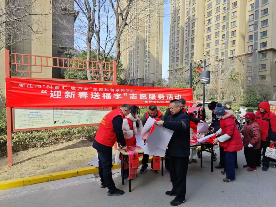 春节将至,年味渐浓。为深化党支部和党员“双报到”工作,弘扬中华优秀传统文化,营造喜庆祥和的节日氛围,近日,市科协组织党员志愿者走进荆河街道曹庄社区熙城国际金园,开展“迎新春送福字”志愿服务活动。