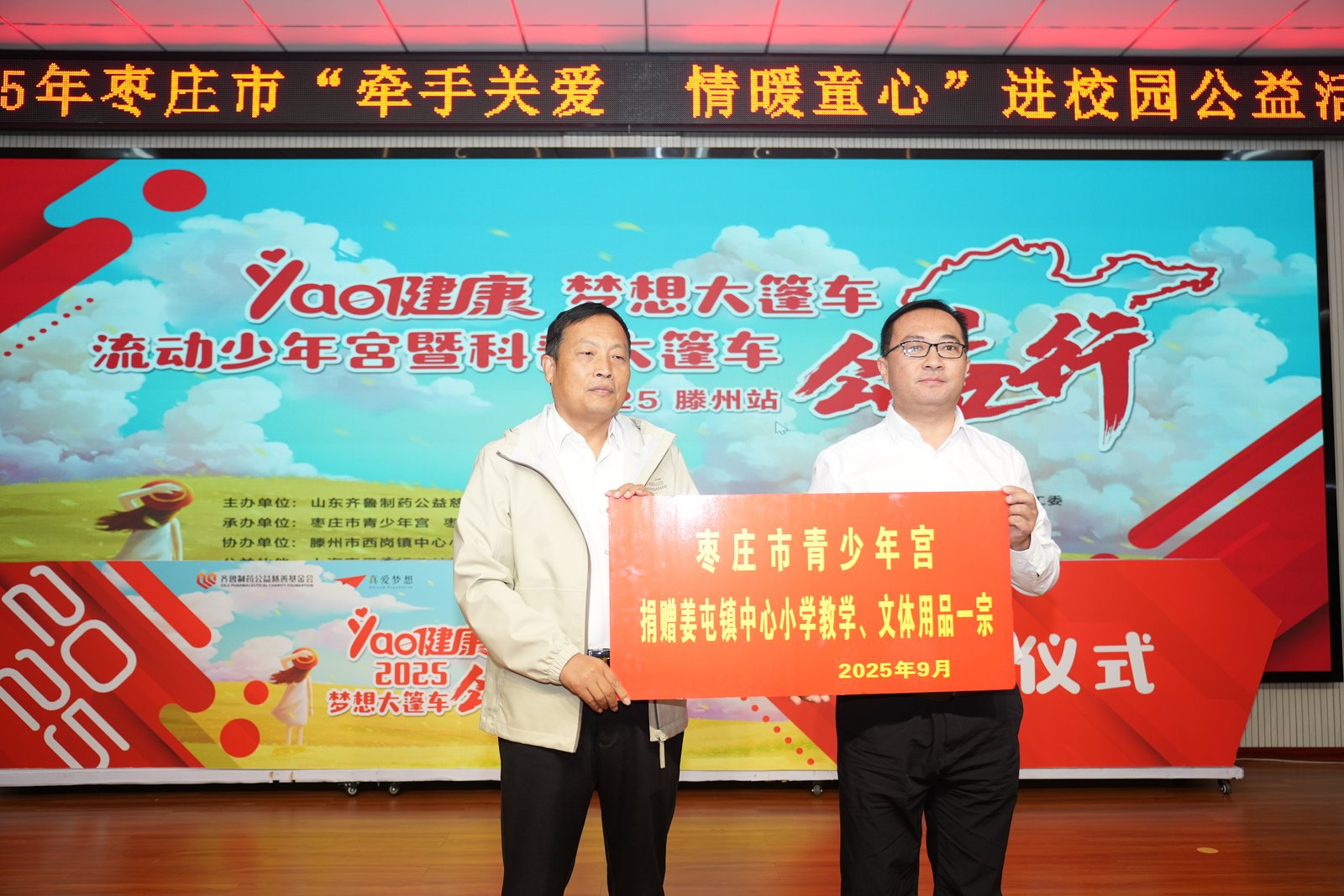 为进一步整合社会资源赋能青少年成长,助推教育城乡一体化发展,9月19日,枣庄市2025年“牵手关爱 情暖童心”进校园公益活动在西岗镇中心小学圆满举行。枣庄团市委、市青少年宫、市科技馆等单位有关负责同志及滕州团市委、市教体局、西岗镇有关负责同志出席开幕式。