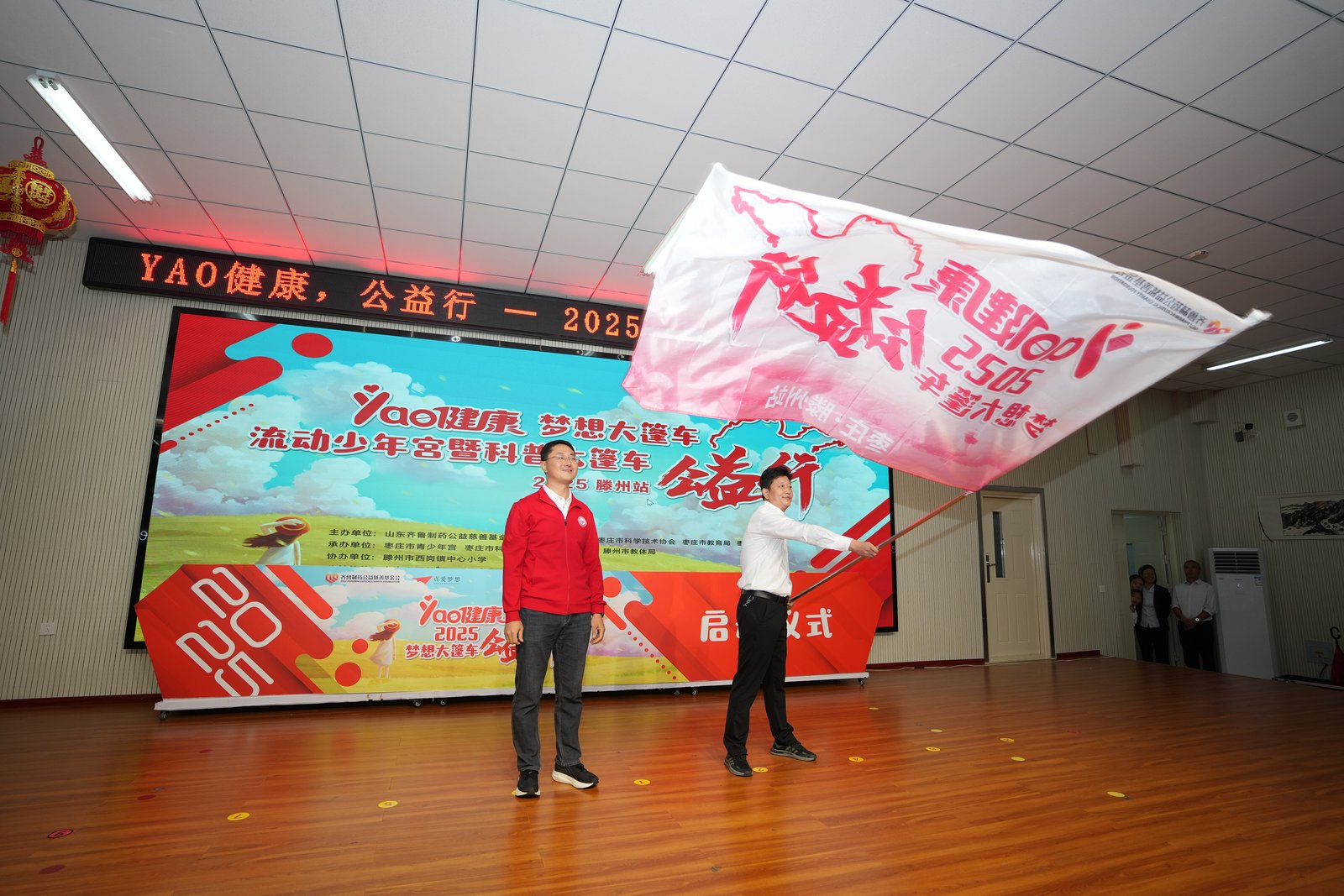 山东齐鲁制药公益慈善基金会为学校授旗。