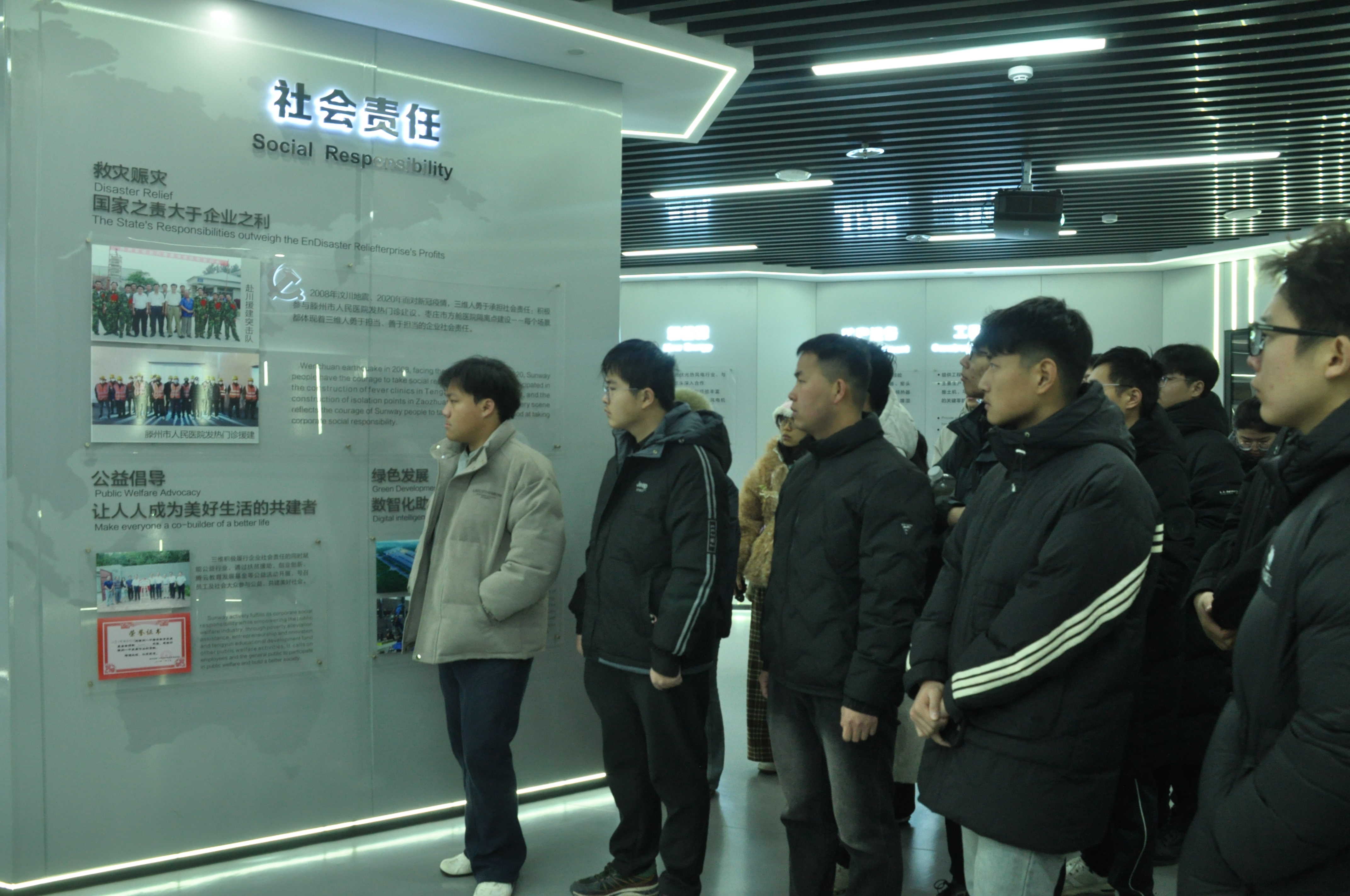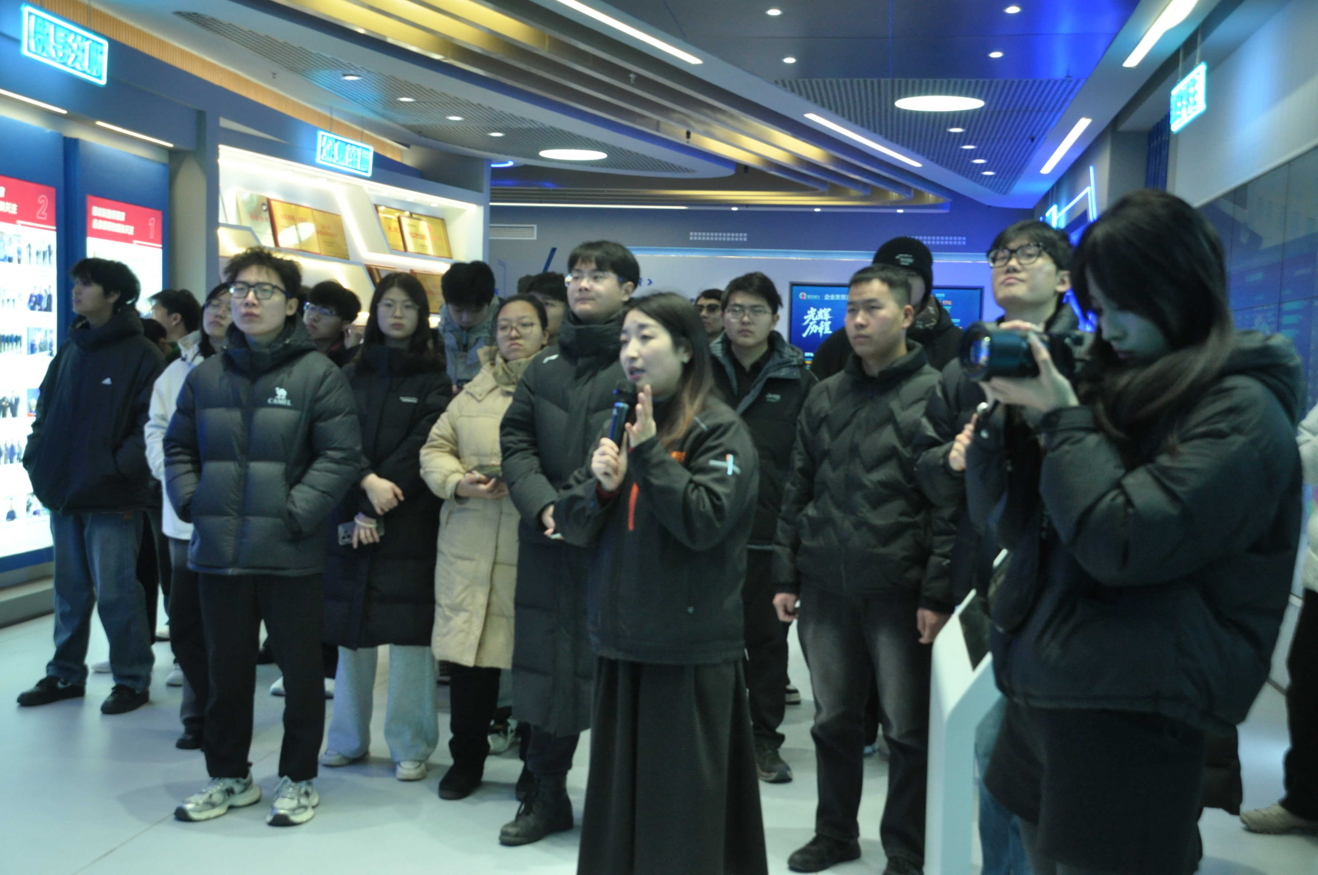 在山东清峦福兴控股(集团)有限公司,大家近距离参观了AI智能配件展区,前沿技术的应用,让学子们直观感受到科技对传统制造业的赋能。在机房内,整齐的设备阵列与高效的运维系统,展现了企业数字化转型的坚实基础,也让大学生们对“工业强市”有了更具体的认知。