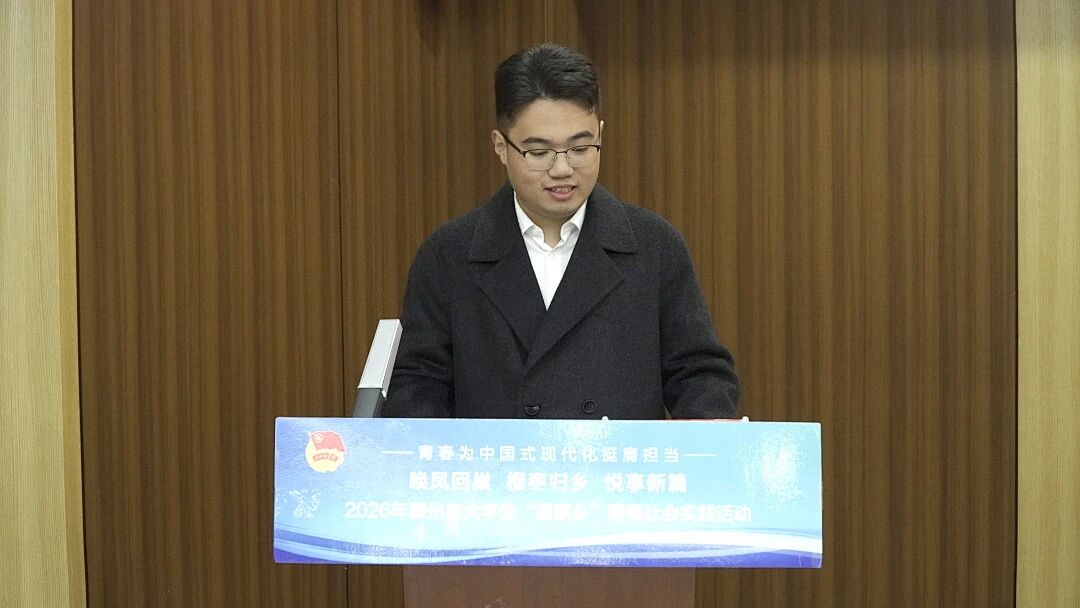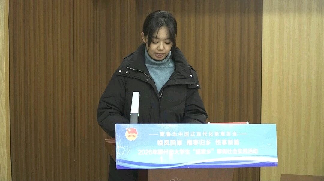郭晴川同学代表2026年大学生“返家乡”寒假社会实践临时团委发言,汇报了寒假期间临时团支部的组织生活和活动开展情况。临时团委充分发挥凝聚作用,组织学子们开展主题团日、青年夜校等6次活动,不仅增强了团队凝聚力,也让大家在实践中深化了对家乡发展的认知。“我们不仅是参与者,更是彼此成长的见证者。”