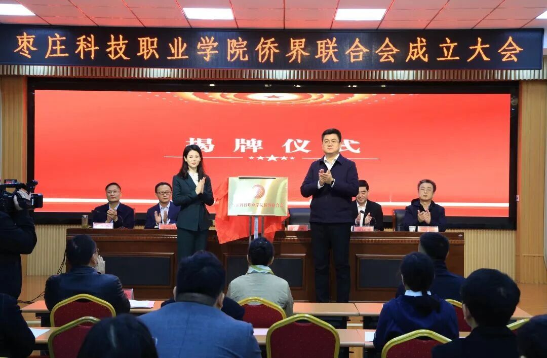 会议宣读了《同意成立枣庄科技职业学院侨联的批复》及第一届委员会领导班子名单。龙晓华与程亮共同为“枣庄科技职业学院侨界联合会”揭牌。