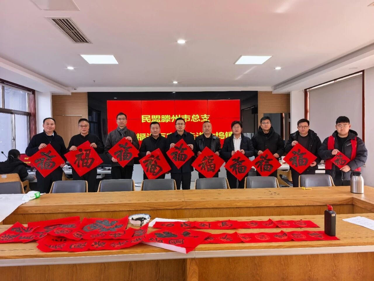 2月9日,民盟滕州市总支走进大坞镇开展“送福进万家”活动,为一线干部群众送去新春祝福。滕州民盟书画院院长袁家峰及多位盟员书画家参加活动。