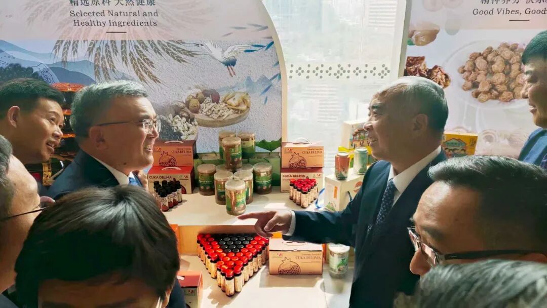 此次参展,滕州特色产品成为现场焦点。“滕粮善品”品牌旗下的“榴金岁月”石榴醋、土豆米,凭借独特的口味和地域文化内涵吸引众多目光;山东启腾生物科技有限公司、滕州市新东谷面粉有限公司的优质粮油产品,以及景坤张汪板鸭的传统特色食品,也以过硬品质获得采购商广泛关注。这些产品的集中亮相,有效提升了“滕粮善品”等滕州农业品牌在东南亚市场的认知度与影响力,为后续拓展海外市场积累了大量潜在客户资源。