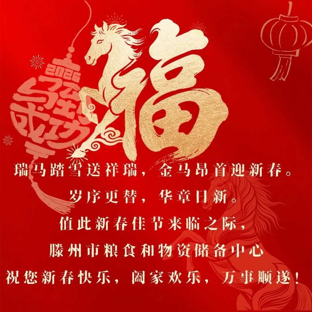 市粮食和物资储备中心恭祝大家:新春快乐,马年大吉,阖家幸福,万事如意!