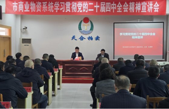 12月8日上午,市商业物资行业事务中心在天和拍卖行会议室召开学习贯彻党的二十届四中全会精神宣讲会。中心党组书记、主任史孝峰作专题宣讲,中心机关全体党员及下属企事业单位党政正职参加学习。