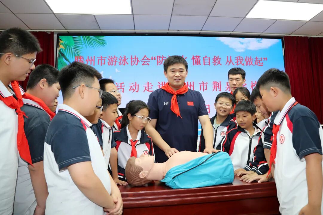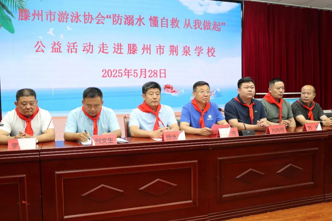 夏意渐浓,防溺水警钟长鸣。为筑牢青少年安全防线,增强学生防溺水意识与自救互救能力,5月28日上午,滕州市游泳协会“防溺水 懂自救 从我做起”公益活动走进荆泉学校,通过物资捐赠与沉浸式教学相结合的方式开展安全教育活动。市体育事业发展中心党组成员、副主任,市体育总会秘书处秘书长杨水山,市游泳协会主席韩伟等出席活动,与该校师生共同见证这场别开生面的生命教育课。