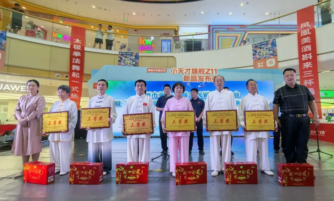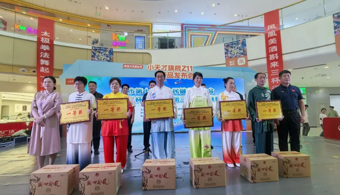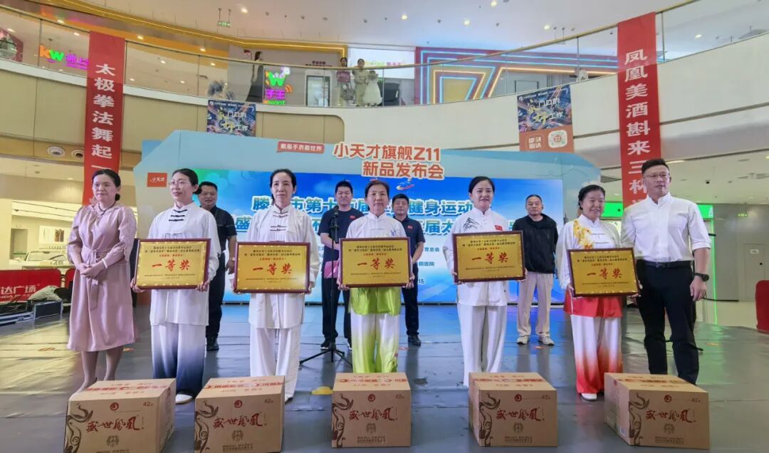 7月13日上午,滕州市第十五届全民健身运动会暨“盛世凤凰杯”第三届太极拳精品赛在万达广场举行。市体育事业发展中心党组书记、主任丁涛,市体育事业发展中心党组成员、副主任、市体育总会秘书处秘书长杨水山,市体育总会秘书处办公室主任冯恩源,枣庄市老年体协副秘书长、太极拳专委会主任、滕州市太极拳运动协会执行主席张宗军,滕州市太极拳运动协会主席吕显德,滕州万达广场总经理徐翠云,滕州市善国医院院长张雷,盛世凤凰酒业滕州总经销经理闫敏等领导嘉宾出席活动,与现场数百名观众共同见证这场太极文化盛宴。