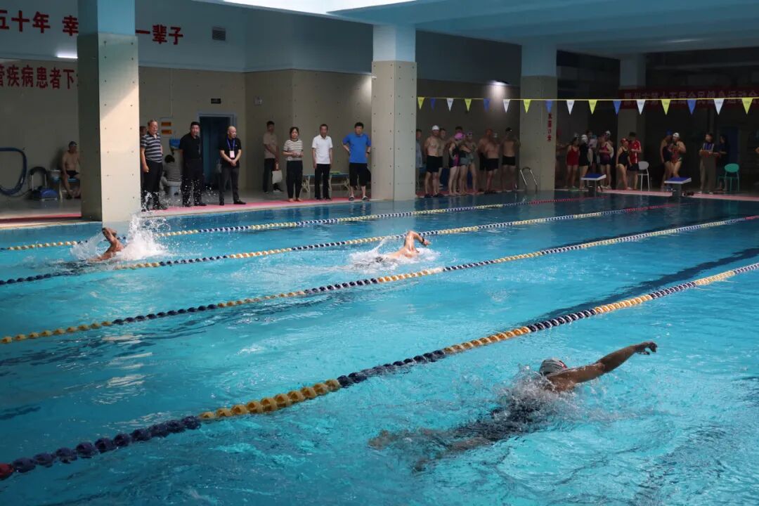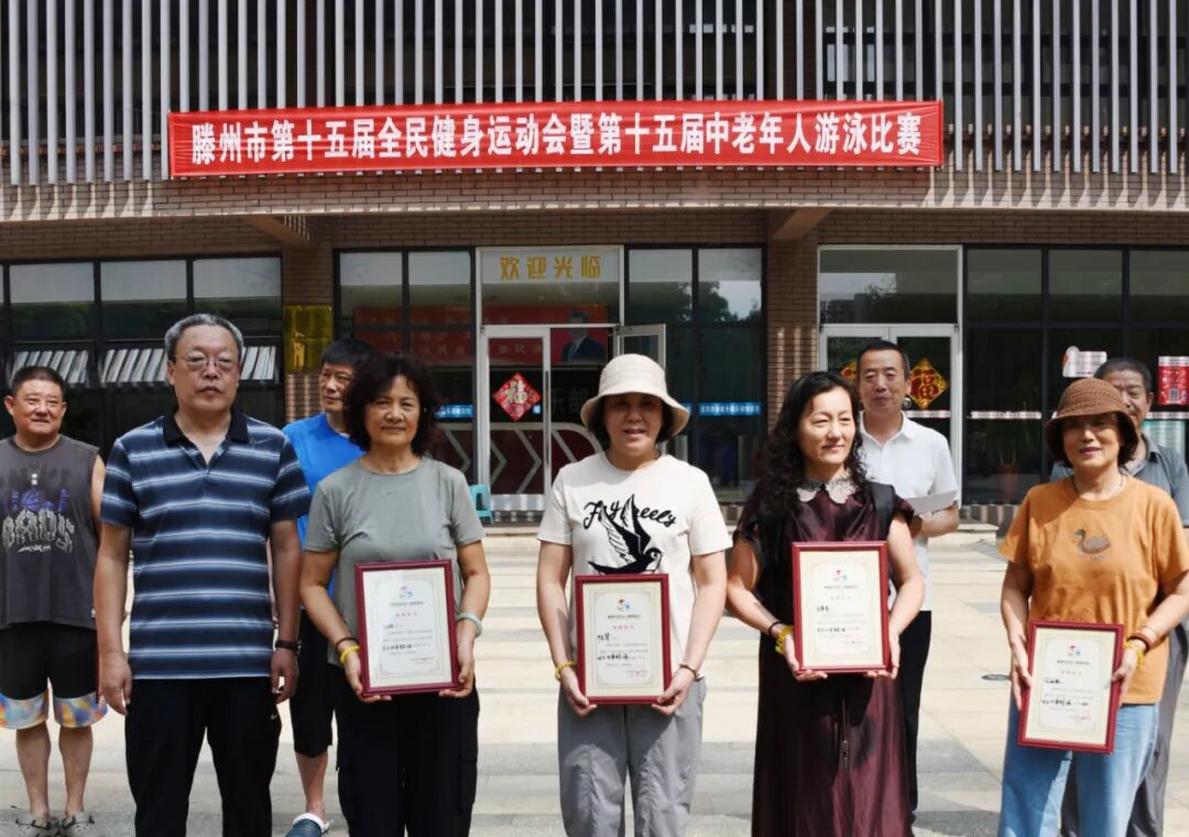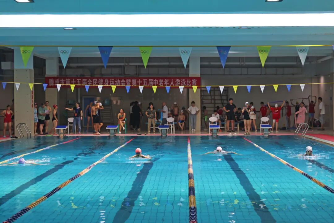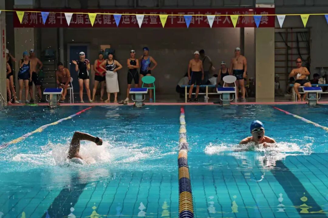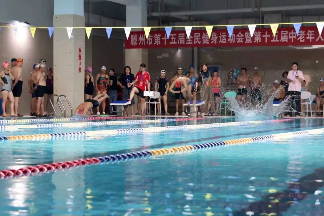 9月14日,滕州市第十五届全民健身运动会暨第十五届中老年人游泳比赛在人和蓝湾洺洋游泳健身俱乐部举行。此次比赛设男子组和女子组25米自由泳、蛙泳,50米自由泳、蛙泳八个项目,共有近百名中老年游泳爱好者参赛。枣庄市老年体协副主席、滕州市老年体协主席宗大全,副主席王玉亚、李继太,副秘书长甄文出席活动。