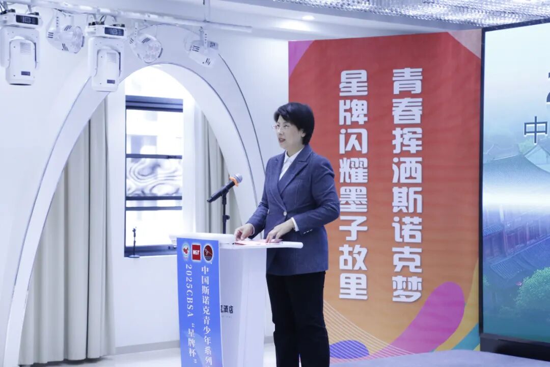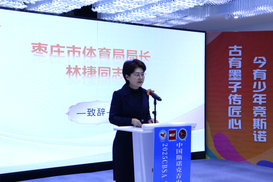 枣庄市体育局局长林捷同志首先代表主办方致辞。她对各位领导、嘉宾、参赛选手及各界朋友的到来表示热烈欢迎,并强调了枣庄市及滕州市对体育事业,尤其是台球运动发展的高度重视。她表示,此次高水平青少年赛事的举办,将为本地体育产业发展和城市活力提升注入新动能,预祝各位选手赛出水平、赛出风采。