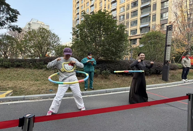 比赛现场气氛热烈、精彩纷呈。运动会共设置拔河、呼啦圈、跳绳、滚铁环、投壶等五个趣味项目。随着一声清脆的哨响,比赛正式拉开帷幕。拔河比赛中,参赛队员们紧握长绳、团结协作、奋力拼搏,场边观众的加油呐喊声此起彼伏,将现场气氛推向高潮。呼啦圈与跳绳项目充分展现了女选手们的灵动与活力,滚铁环和投壶则唤起了大家共同的童年记忆,趣味盎然。整场活动中,参赛选手们各展所长,既有智慧的较量,也有协作的考验,更不乏风格的展示,现场掌声、笑声与欢呼声不断,洋溢着欢乐和谐的邻里情谊。