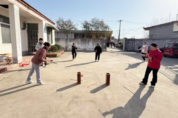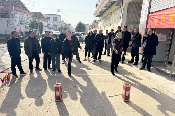 在薛河、羊庄党总支的赛场上,拔河、一分钟跳绳、一分钟踢毽子、投壶等多项富有趣味性的比赛项目轮番上演,吸引了众多群众参与。拔河比赛上,参赛者们个个精神抖擞,紧握绳索,随着裁判一声令下,双方使出浑身解数,你拉我拽,互不相让;跳绳比赛中,选手们轻盈跳跃,彩绳飞舞,展现出良好的身体协调性和节奏感;踢毽子项目让村民们重温儿时欢乐;投壶项目则充满古风雅韵,村民们手持羽箭,屏息凝神,努力将箭投入壶中。每一次成功投中都会引来阵阵欢呼,而稍有不慎的失手则伴着善意的笑声。