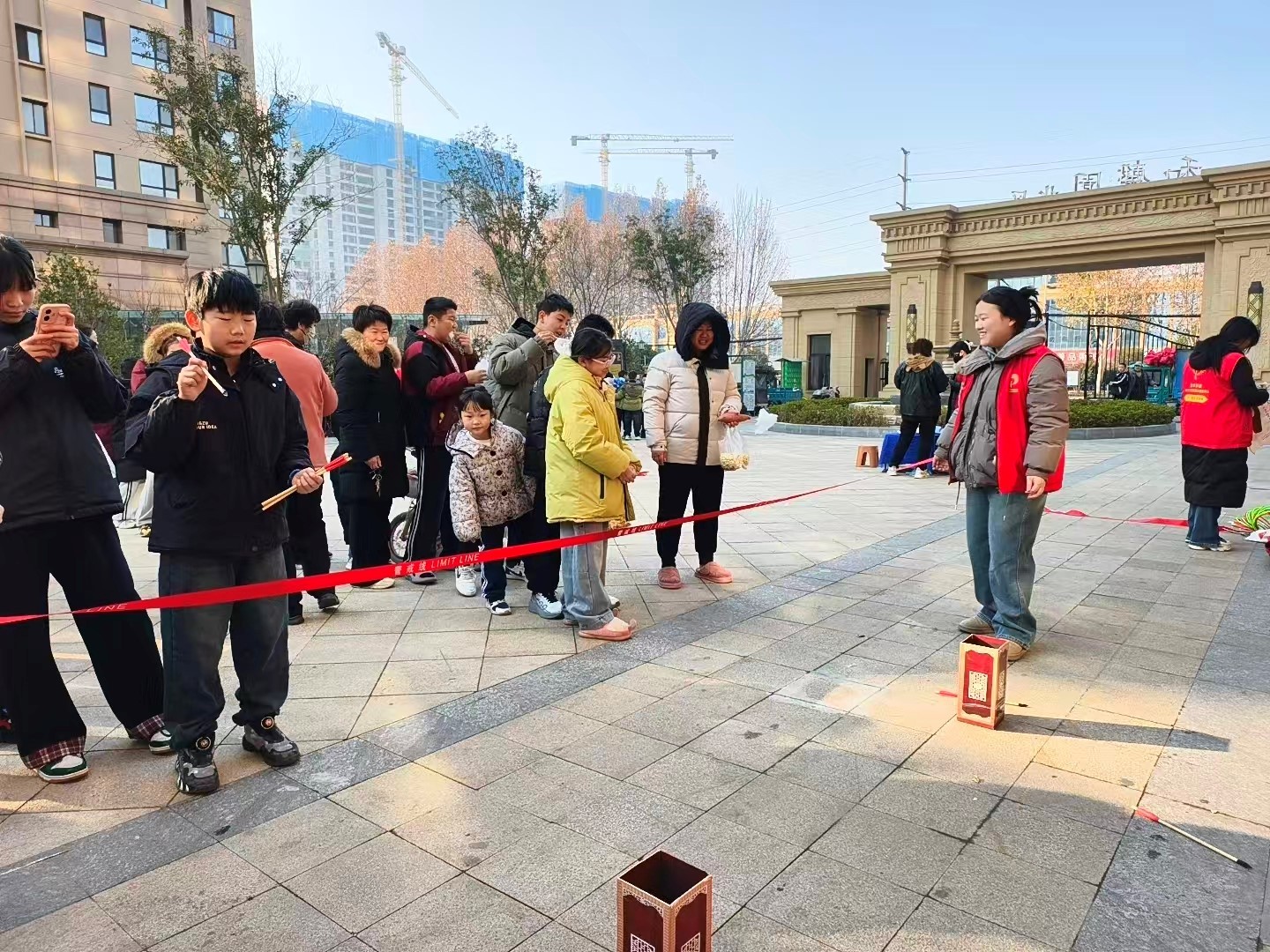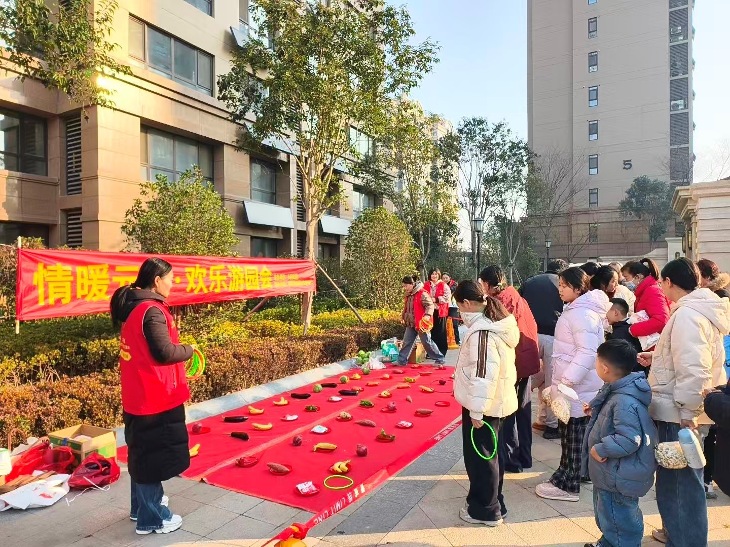 活动现场设置了多个功能区域,涵盖趣味套圈、投壶、棉花糖制作以及文明宣传等多项娱乐及便民服务活动。其中,套圈游戏区域人声鼎沸,充满了欢声笑语。居民们手持套圈,站在指定位置,眼神专注地瞄准目标。随着一个个套圈抛出,现场气氛紧张又刺激。套中奖品的居民欢呼雀跃,没套中的也不气馁,继续排队等待下一次机会,现场一片其乐融融。