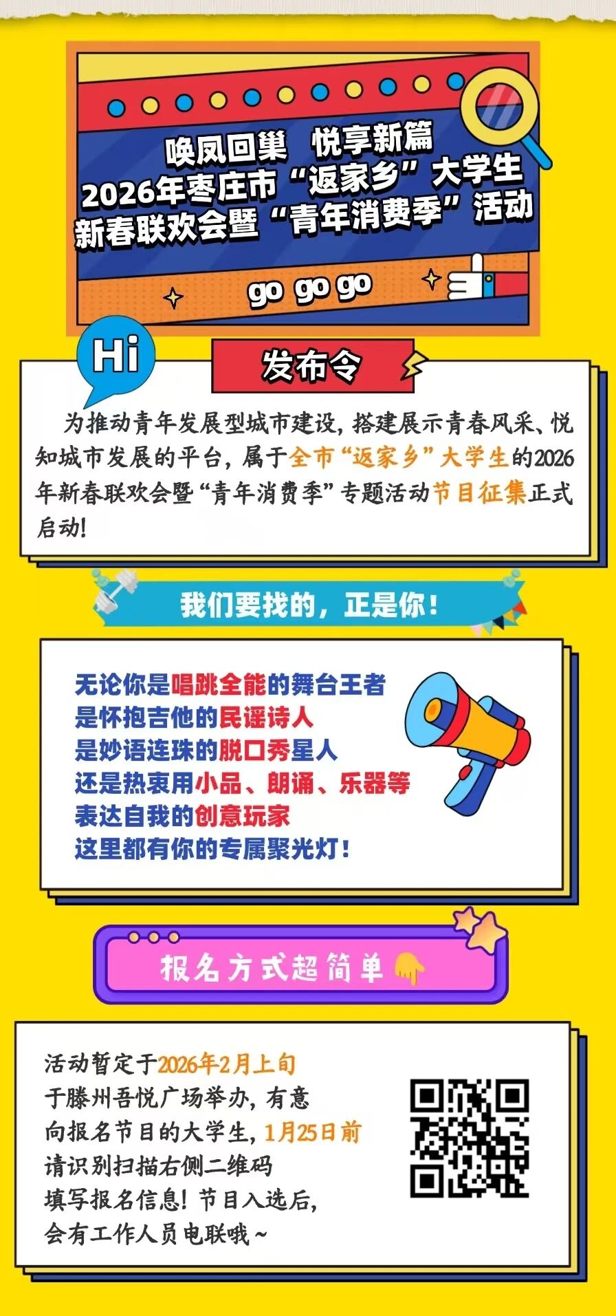 【健康滕州 体育先行】回家“枣”点乐子!大学生新春联欢会暨青年消费季活动节目征集正式启动