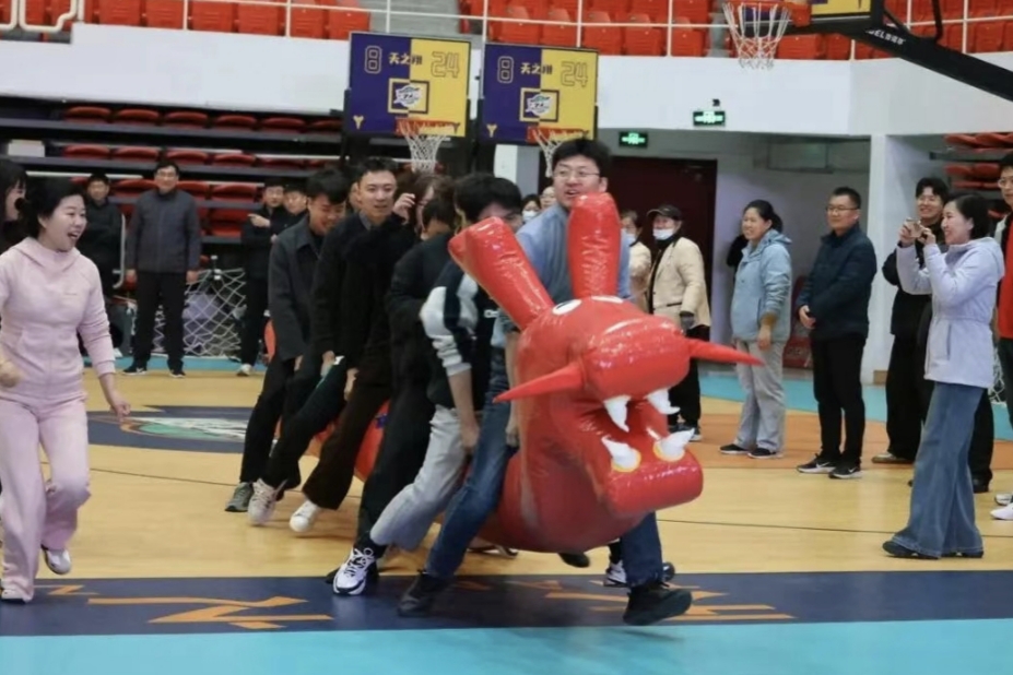 赛前热身环节后,拔河比赛、定点投篮、我最摇摆、一圈到底、趣味接力、旱地龙舟六大团体项目依次开展,各队伍同台竞技、默契协作,赛场氛围热烈非凡。拔河比赛中,队员们凝心聚力、奋力拼搏,展现出强劲的团队凝聚力;定点投篮选手们精准发力、默契配合,尽显竞技风采;我最摇摆项目里,男女搭档默契配合,在规定时间内抖落乒乓球,趣味十足。一圈到底考验团队协作,队员们手拉手传接呼啦圈,争分夺秒突破挑战。趣味接力融合跳房子、摸石头过河、掌上明珠、蒙眼敲锣四大环节,队员们各展所长、衔接有序;旱地龙舟上,队员们步调协同向前冲刺,尽显奋进姿态。