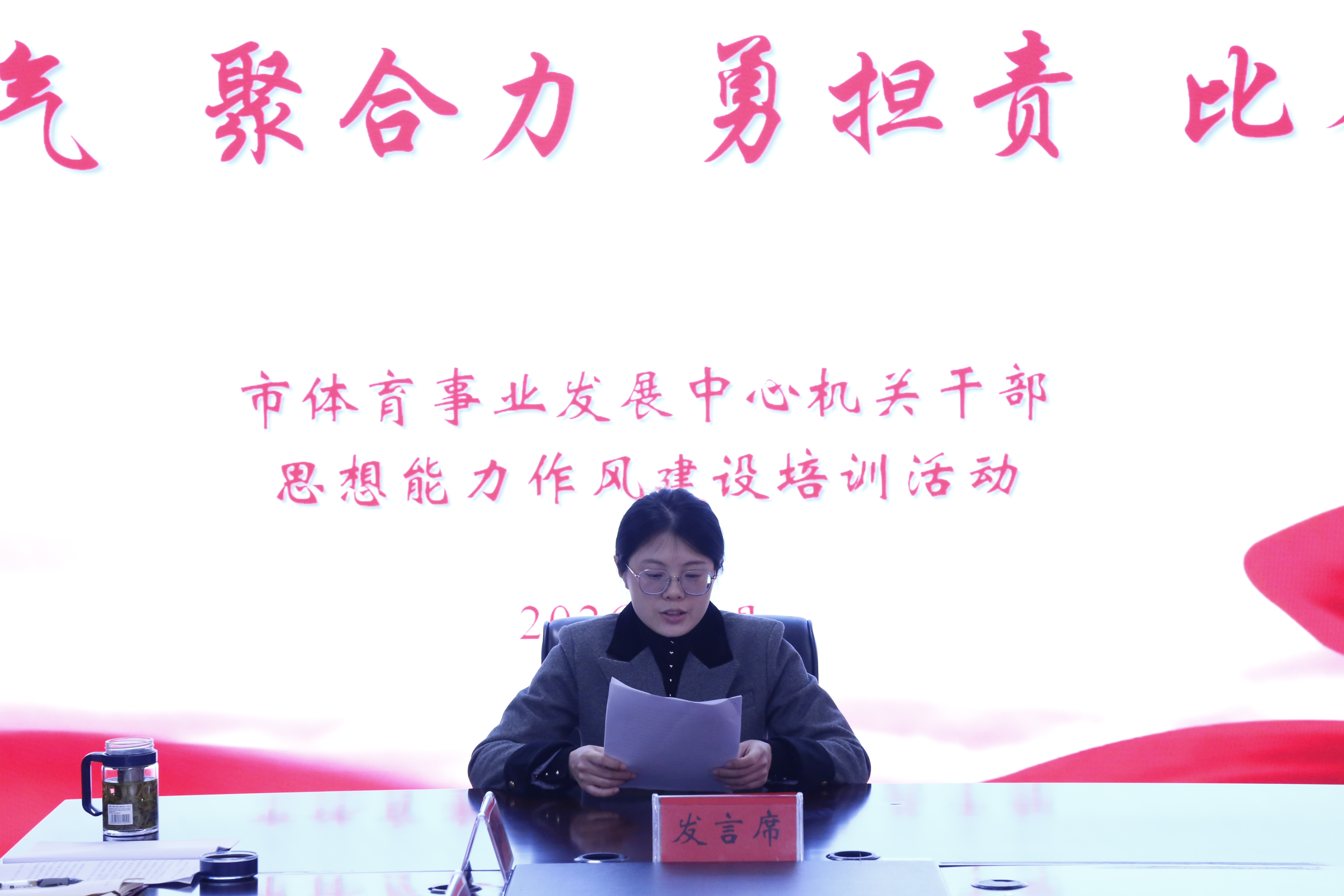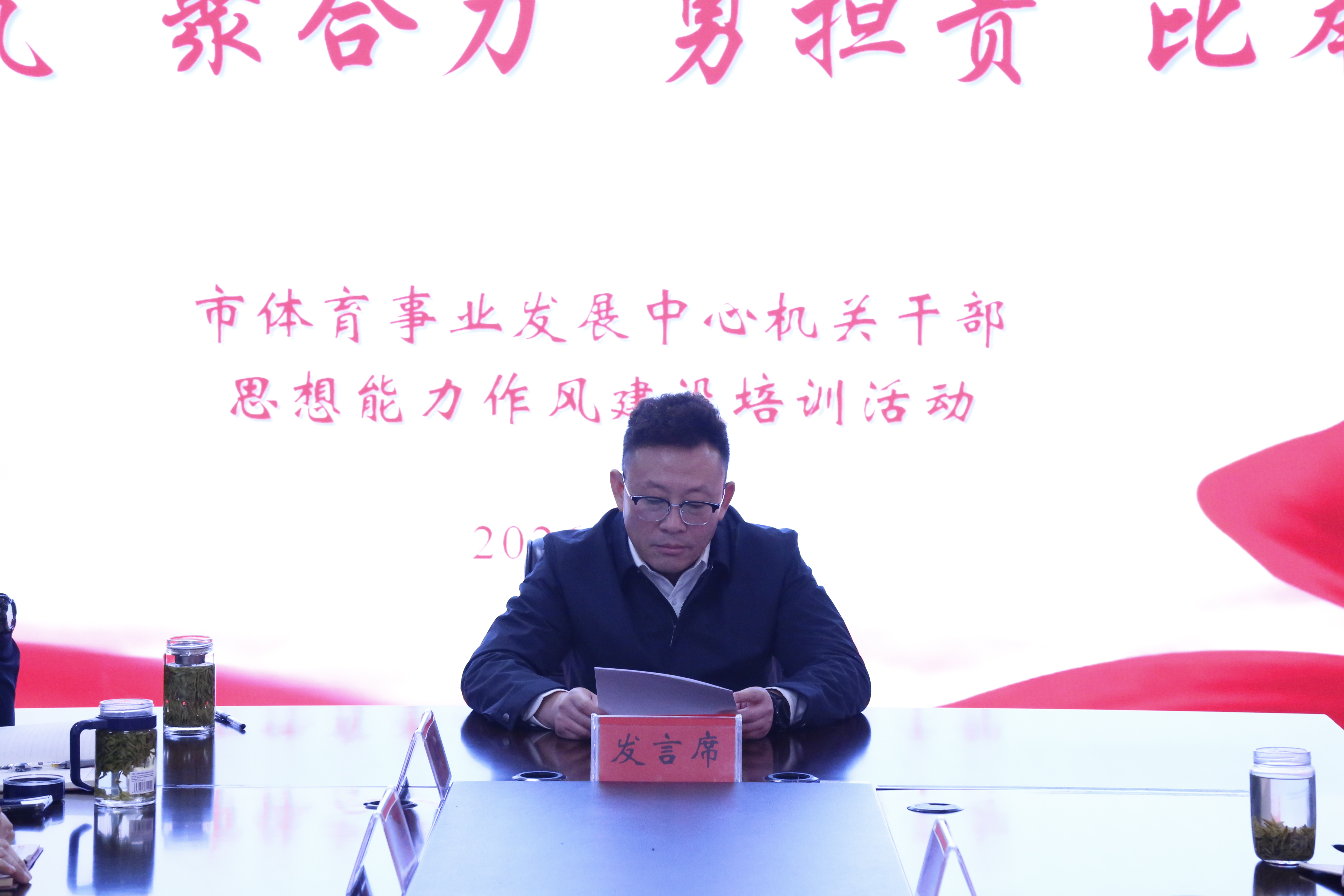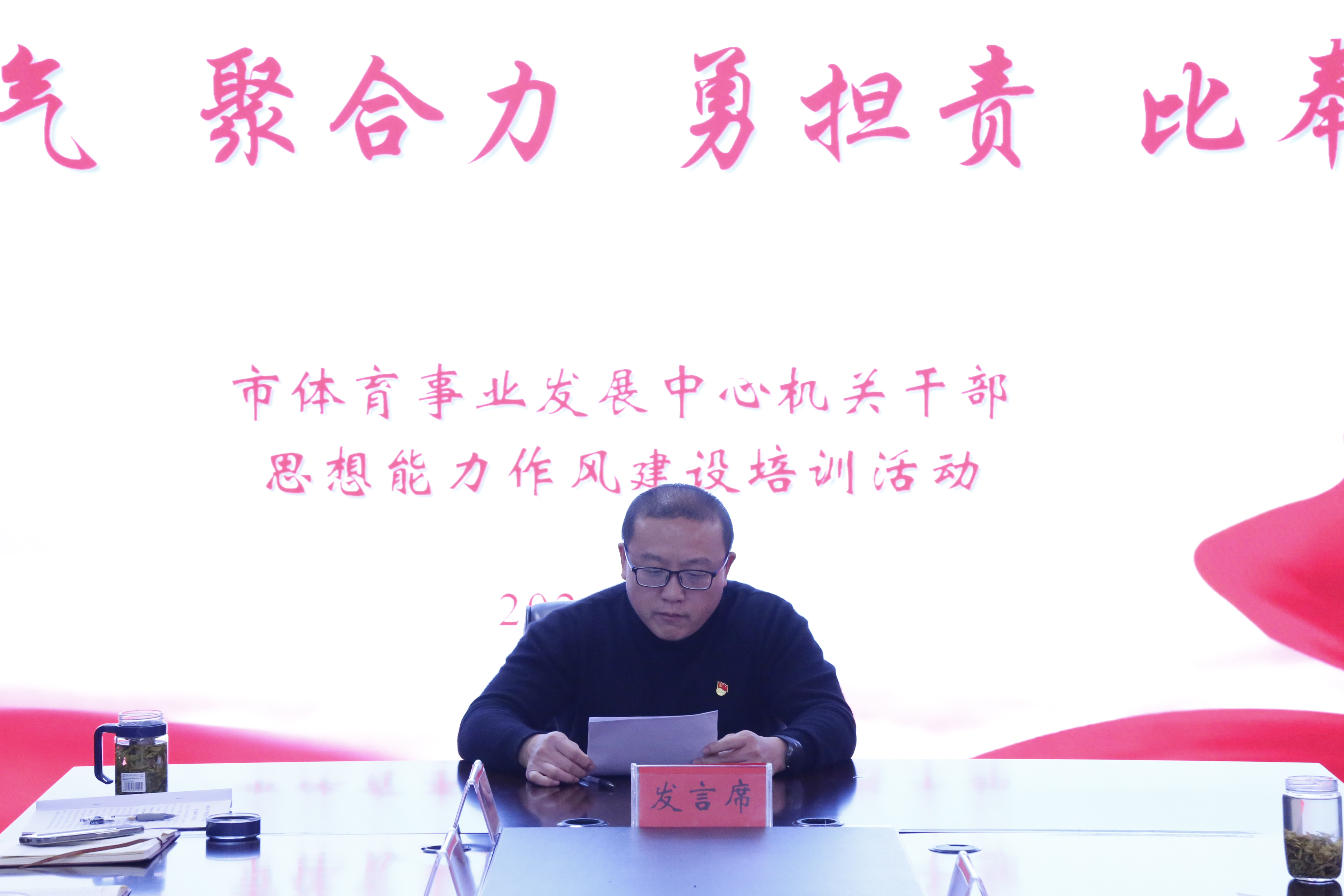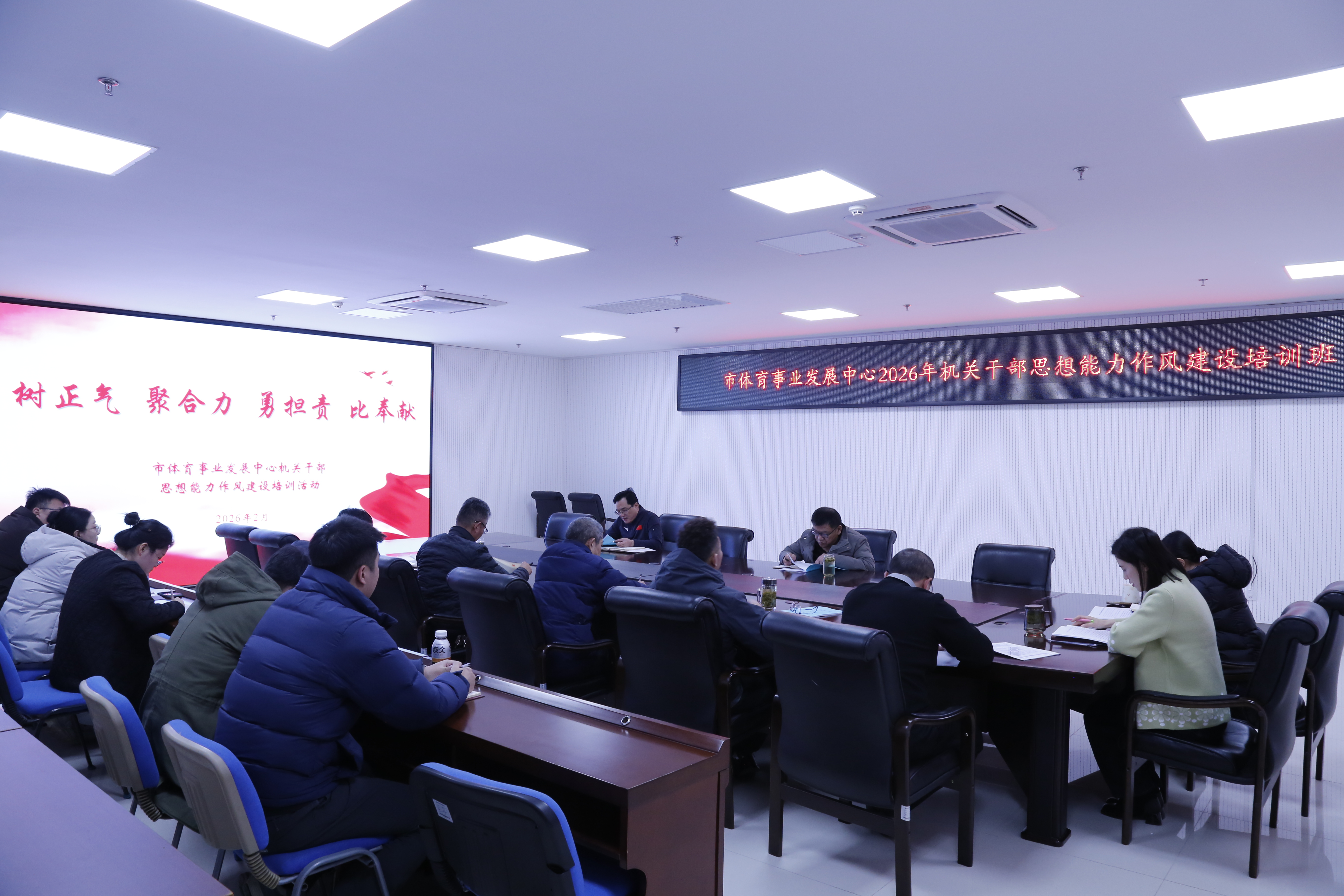 为进一步加强和改进机关作风建设,严肃工作纪律,规范工作行为,强化责任担当,让广大干部职工迅速收心归位,激发干事创业的热情,推动全年各项工作高点起步、精彩开局,掀起新一年的全民健身热潮,近期,市体育事业发展中心举办机关干部思想能力作风建设培训活动。党组书记、主任丁涛出席活动并作动员讲话,党组成员、副主任,市体育总会秘书处秘书长杨水山主持活动,全体人员参加活动。