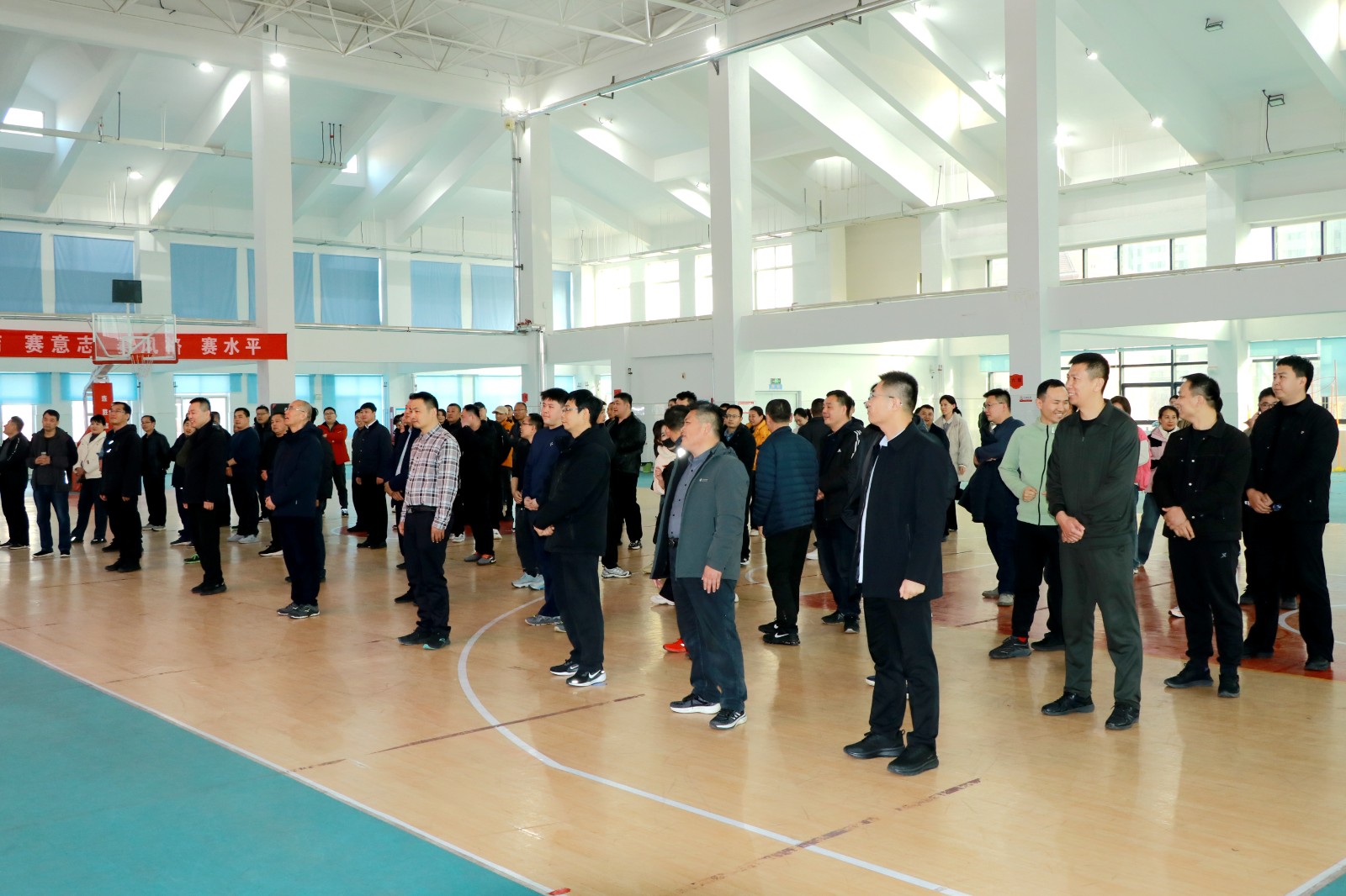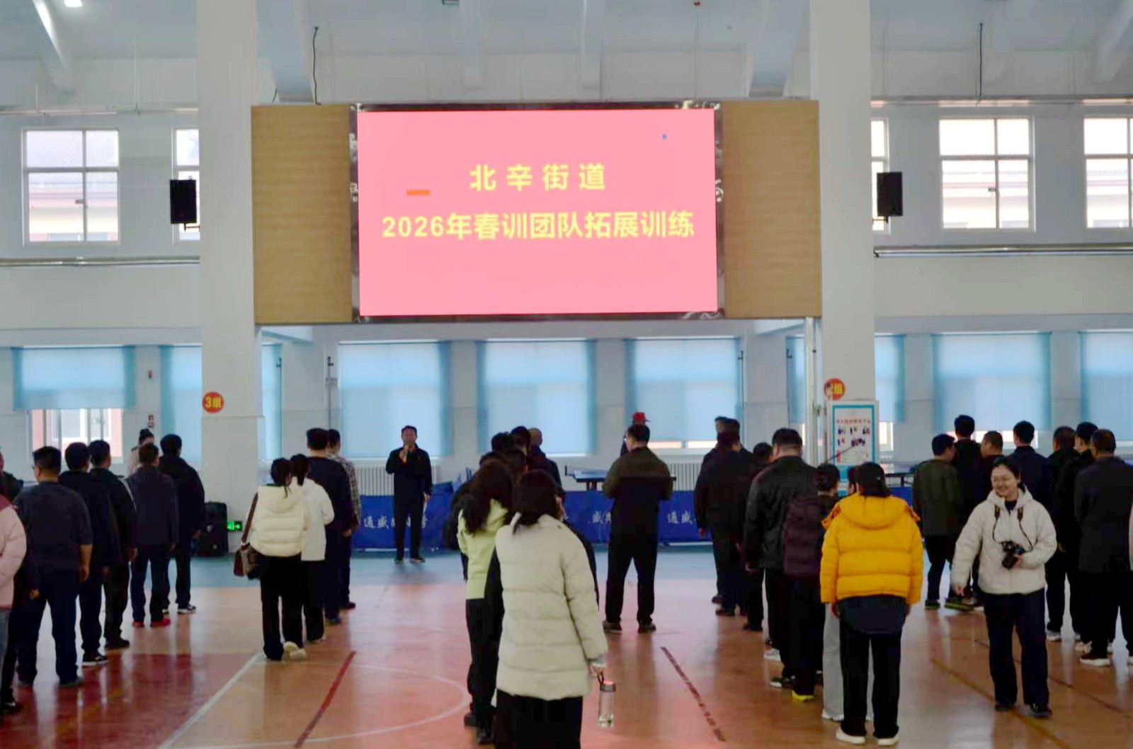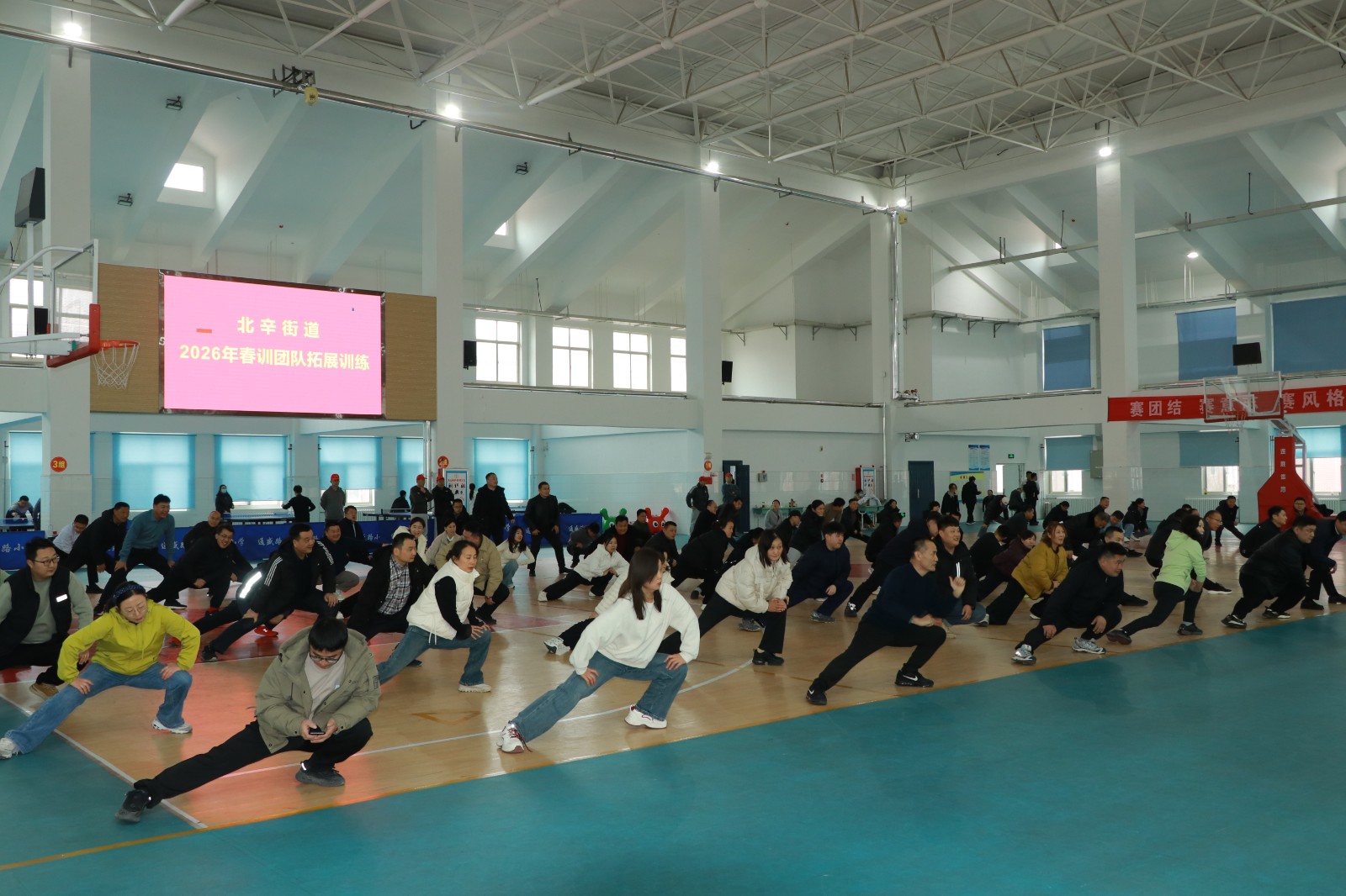 2月25日,北辛街道春训团队拓展训练活动在通盛路小学体育馆内继续举办,全体参赛人员热情不减、斗志昂扬,在团结协作、奋勇拼搏中续写精彩篇章。街道全体领导干部和全体机关干部参加活动。