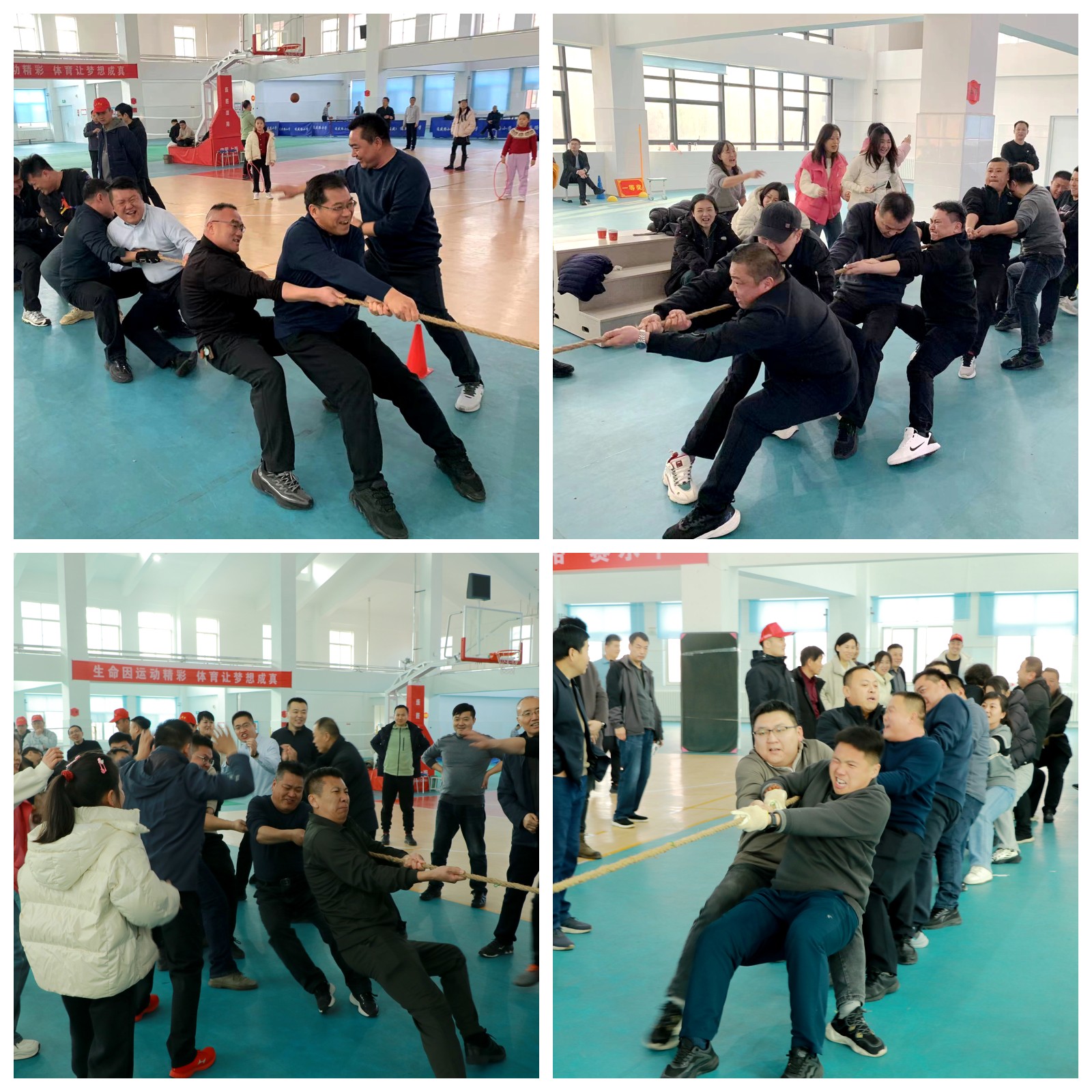 经过热身与磨合,各队伍默契倍增、士气高涨。旱地龙舟齐头并进,队员们步调一致、口号铿锵,在整齐划一的节奏中凝聚同心合力;移形换位灵活应变,大家默契配合、高效衔接,展现出敏捷反应与协同作战能力;接力营救紧张有序,选手们分工协作、争分夺秒,诠释责任与担当;传球投篮精准发力,传递的是信任,投出的是信心,尽显团队默契;压轴的拔河比赛气势如虹,双方咬紧牙关、全力以赴,呐喊声、助威声将氛围推向高潮。活动现场欢笑声此起彼伏,处处洋溢着昂扬向上、团结奋进的良好风貌。