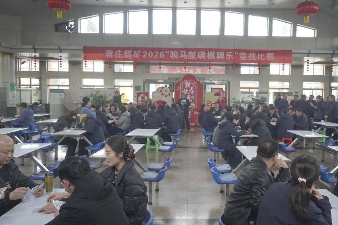 2月27日,蒋庄煤矿职工食堂内暖意融融、气氛热烈,“骏马献瑞棋牌乐”竞技比赛在这里精彩上演。来自各车间工会的棋牌爱好者们欢聚一堂,在智慧与默契的较量中,共同度过了一个充满乐趣的上午,也为马年新春增添了浓厚的节日氛围。