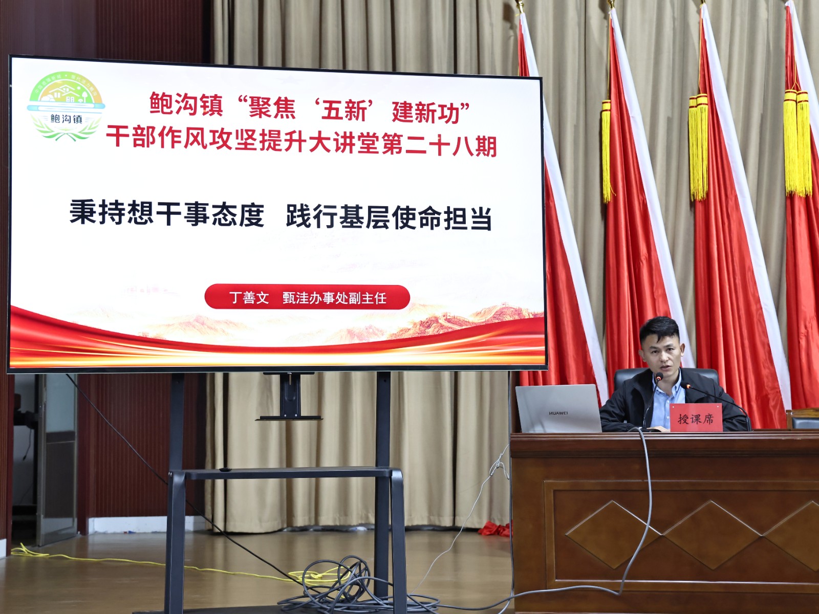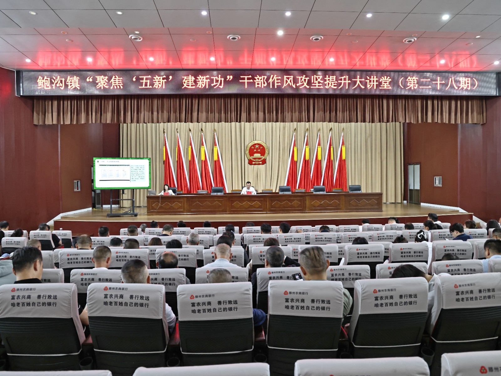 9月29日,鲍沟镇召开“聚焦‘五新’建新功”干部作风攻坚提升大讲堂(第二十八期)。会议由党委副书记邱杰主持,镇全体领导干部、全体机关干部、镇直部门负责人、各村主要负责人参加。