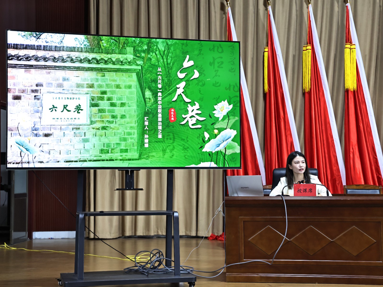 会上,鲍沟镇党委副书记(挂职)以六尺巷典故为切入点,生动阐释“和合共生”传统智慧与现代基层治理的融合。她表示,基层党组织要坚持“听、辨、劝、借、让、和”六步工作法,将六尺巷“和合”文化从抽象理念转化为具体的治理流程,让传统文化成为基层治理的“精神纽带”,增强了治理的文化认同感与群众凝聚力。要以“多元共治”为路径,联动政府、村居、村民等主体,协调各方利益、整合各方资源,将“政府独角戏”变为“社会大合唱”。要以“德法共治”为核心,既借道德教化引导群众包容退让,又依托法治框架规范矛盾解决,实现“法理”与“情理”的统一。