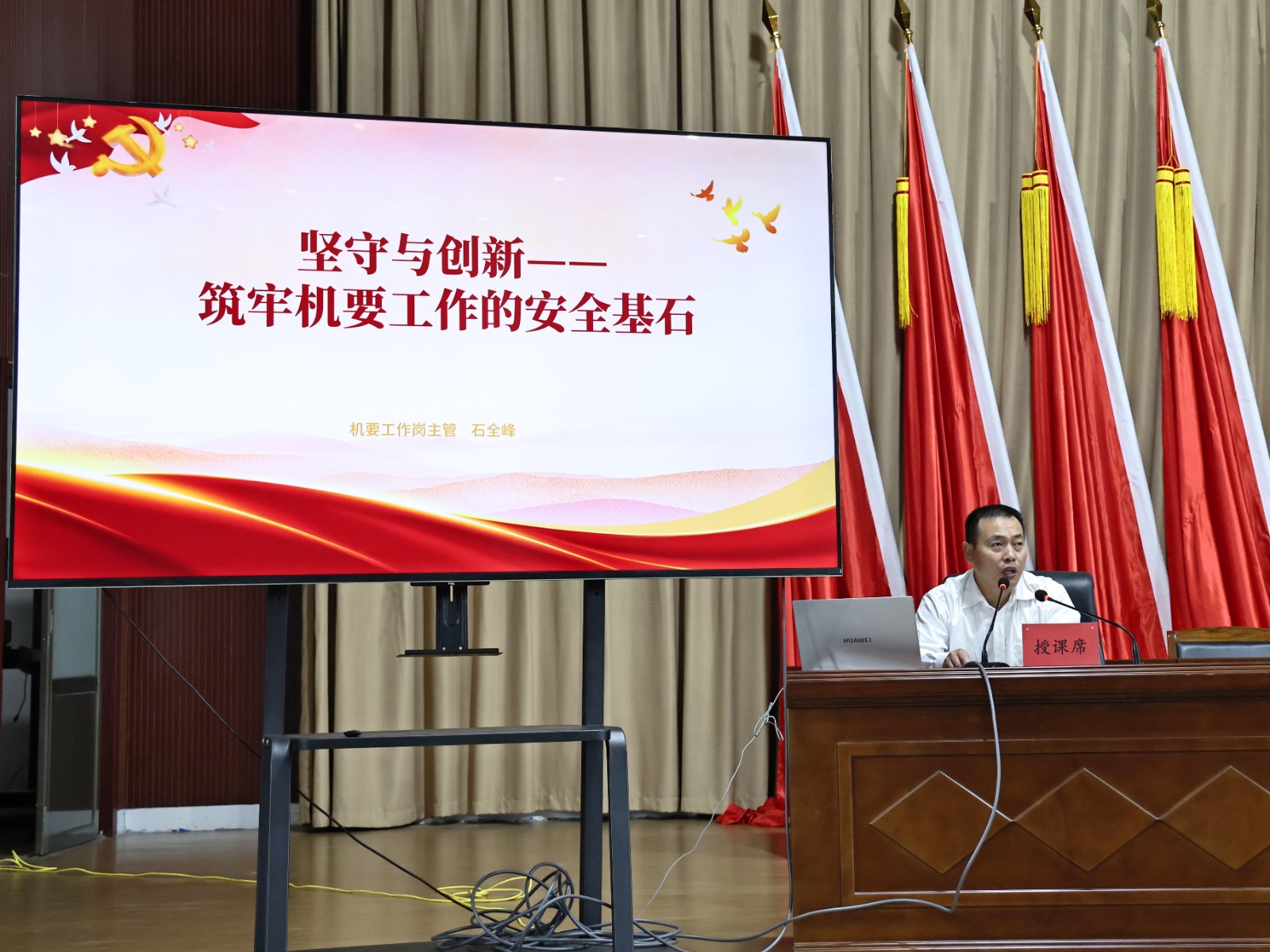 党政办公室机要岗主管以《坚守与创新——筑牢机要工作的安全基石》为题,结合“五新”要求,和大家交流一下自己在工作中的体会和感想。他表示,要筑牢思想防线,确保政治过硬,把保守国家秘密内化为政治责任、工作习惯与行动自觉,时刻紧绷保密之弦。要健全制度体系,规范操作流程,明确岗位职责,通过定期自查与专项检查,确保制度刚性执行,成为安全 “高压线”。要强化细节管理,追求精益求精,以反复核查、交叉校验的习惯追求 “零差错、零失误”。要加强队伍建设,提升专业能力,通过培训和教育,打造政治坚定、业务精通的“机要铁军”。要探索技术创新,适应时代要求,提升电子化办公保密管理与网络安全防护能力。