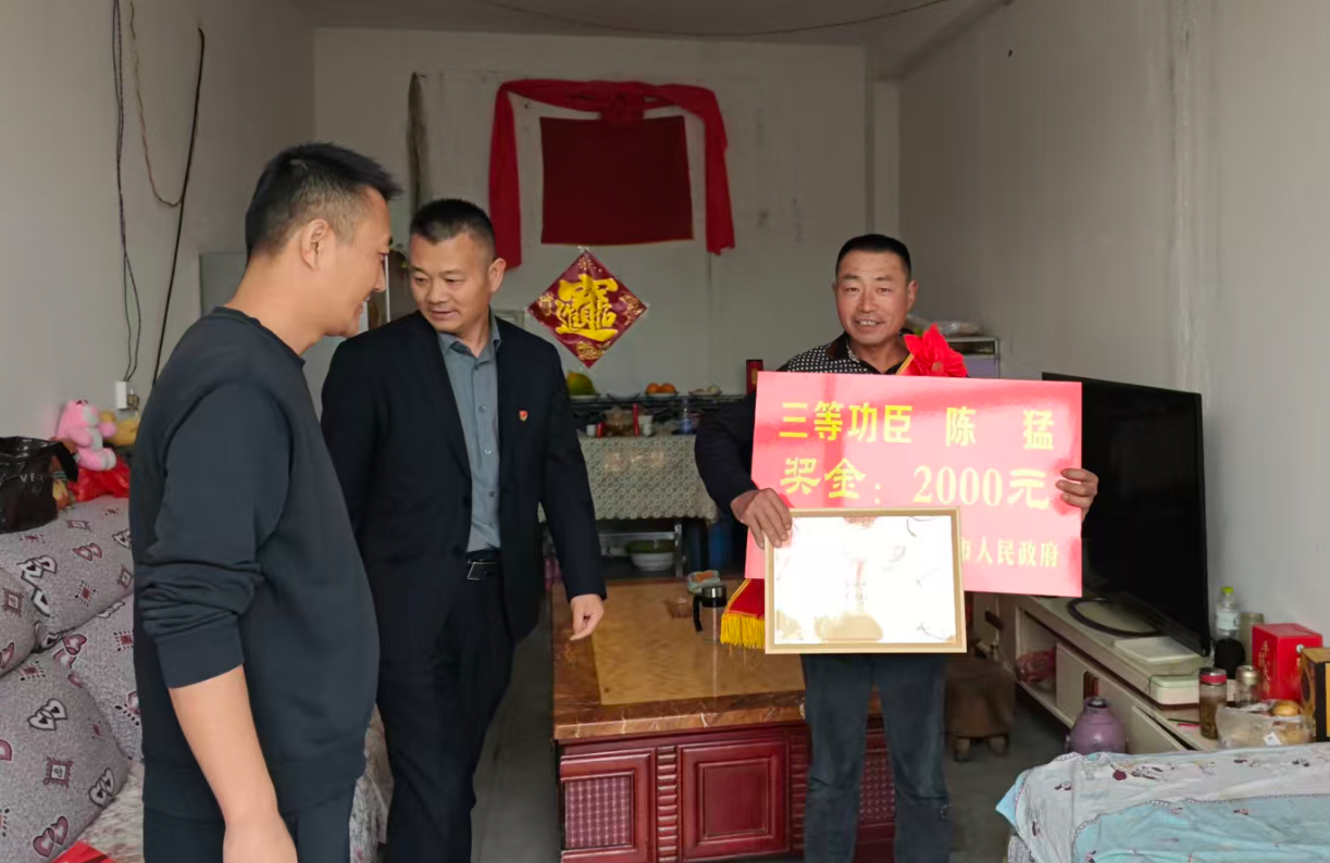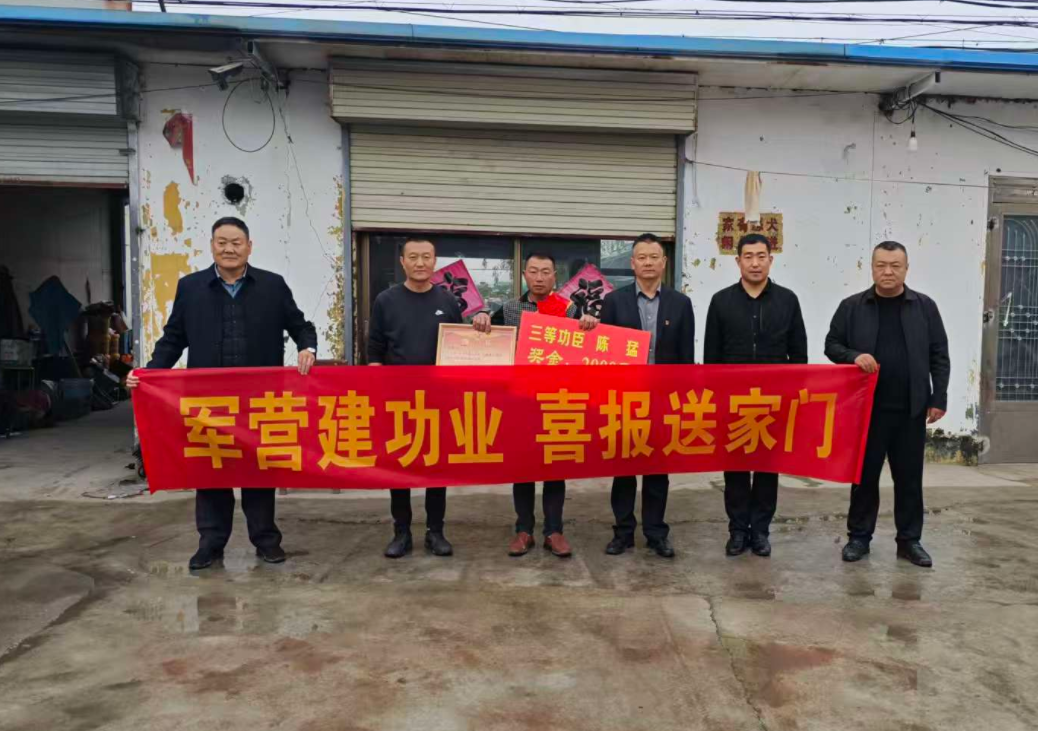 为弘扬新时代拥军优属光荣传统,增强军人荣誉感和军属自豪感,10月15日,滕州国防科技教育基地主任刘书贵一行带着浓浓的关怀与敬意,来到鲍沟镇薛中村,为荣立三等功的现役军人陈猛家属隆重送去喜报和奖金。鲍沟镇退役军人服务站及薛中村负责同志陪同参加活动。
