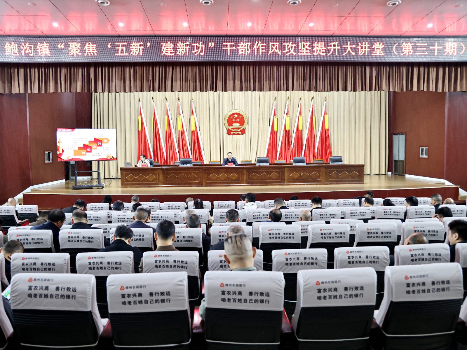 10月20日,鲍沟镇召开“聚焦‘五新’建新功”干部作风攻坚提升大讲堂(第三十期)。会议由党委副书记邱杰主持,镇全体领导干部、全体机关干部、镇直部门负责人、各村主要负责人参加。