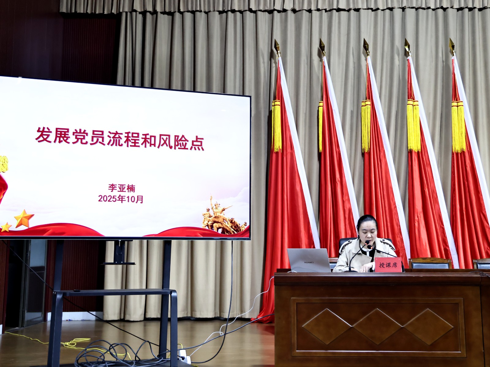 镇党委委员、组织委员围绕发展党员工作展开专题讲解,系统梳理了申请入党、入党积极分子确定培养、发展对象确定考察、预备党员接收、预备党员教育考察转正等五个阶段、二十五个步骤。重点明确了发展党员须具备的五个基本条件,强调了工作中需重点把握的两个问题、四个关键环节,详细说明过程中需要注意的事项及防范措施,并从压实工作责任、提升业务能力、严肃工作纪律等方面提出具体要求。