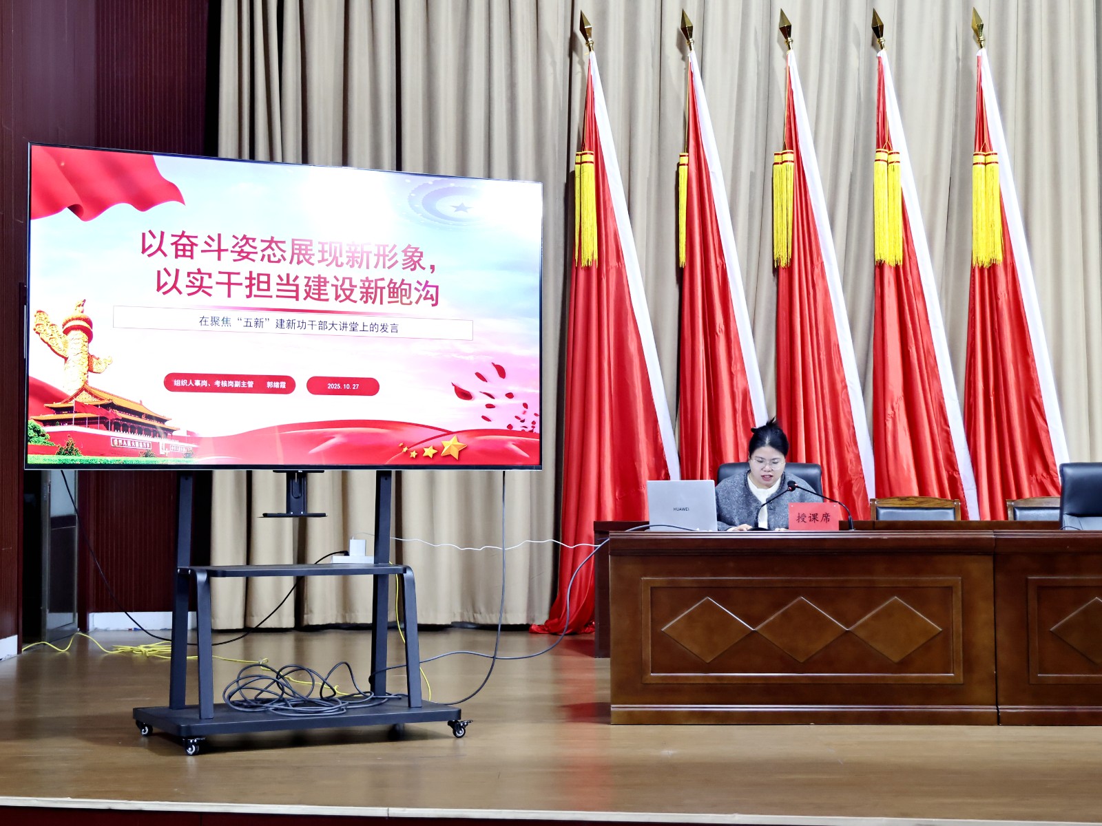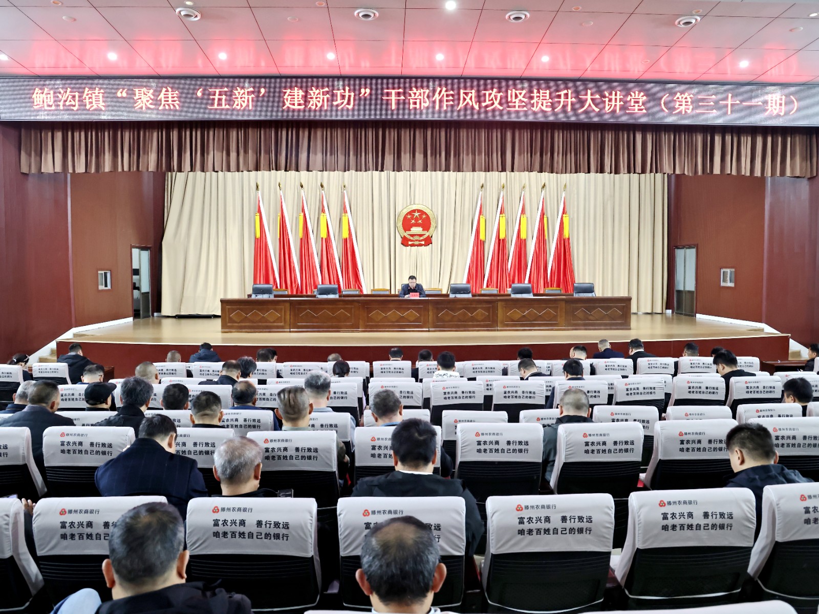 10月27日,鲍沟镇召开“聚焦‘五新’建新功”干部作风攻坚提升大讲堂(第三十一期)。会议由党委副书记、政法委员马启浩主持,镇全体领导干部、全体机关干部、镇直部门负责人、各村主要负责人参加。