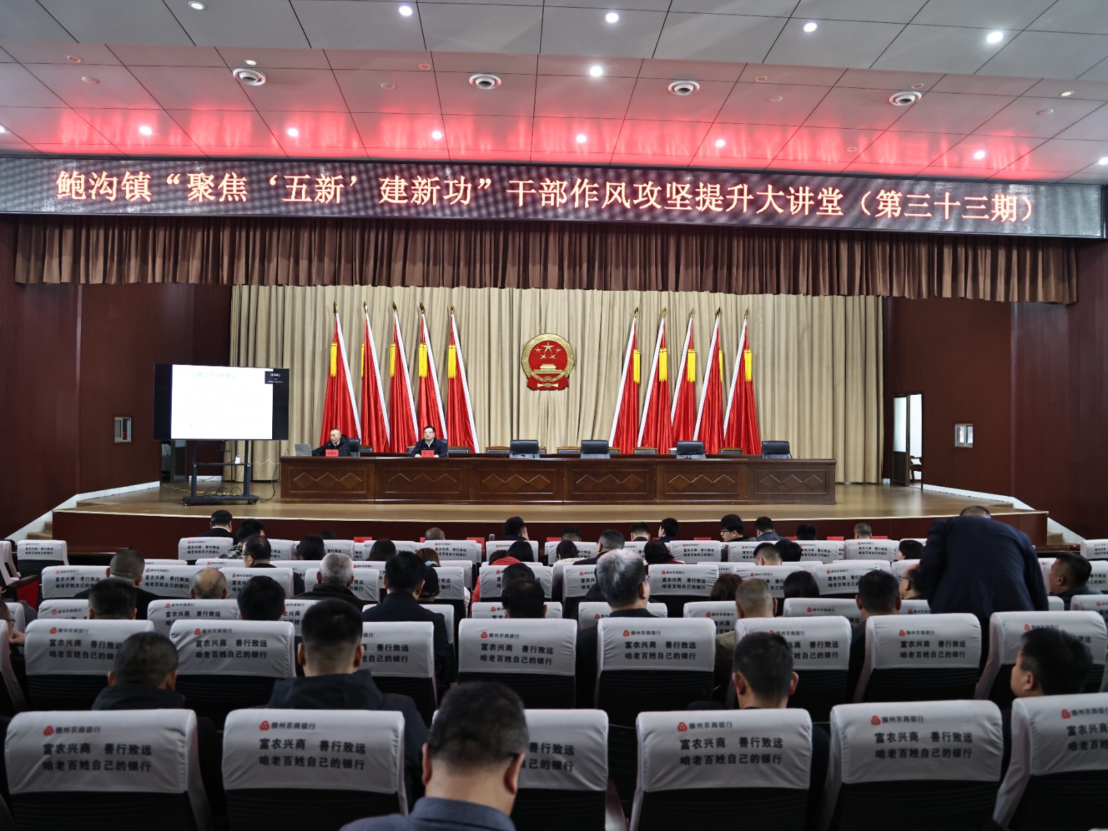11月10日,鲍沟镇召开“聚焦‘五新’建新功”干部作风攻坚提升大讲堂(第三十三期)。会议由党委副书记邱杰主持,镇全体领导干部、全体机关干部、镇直部门负责人、各村主要负责人参加。