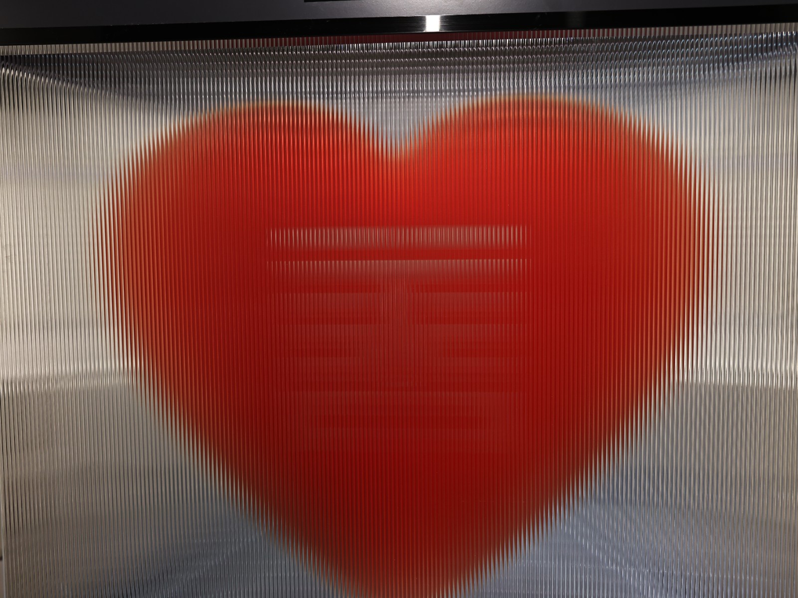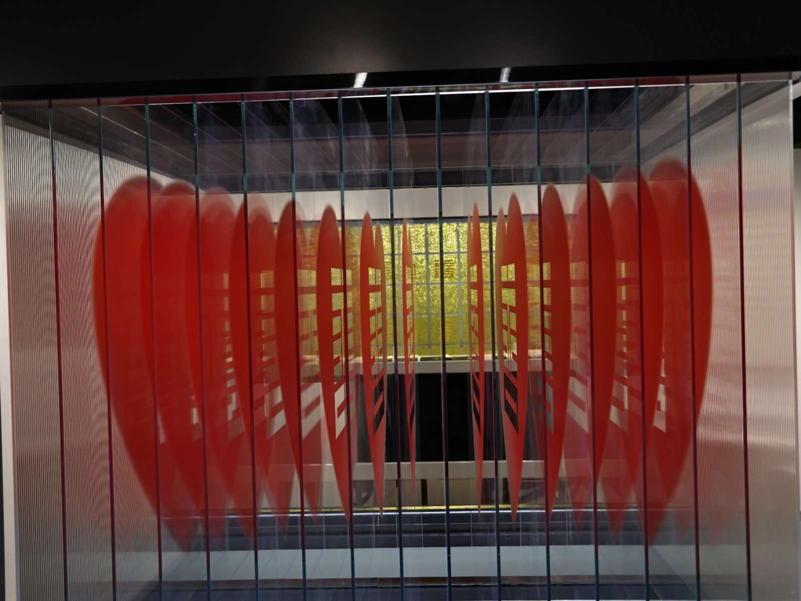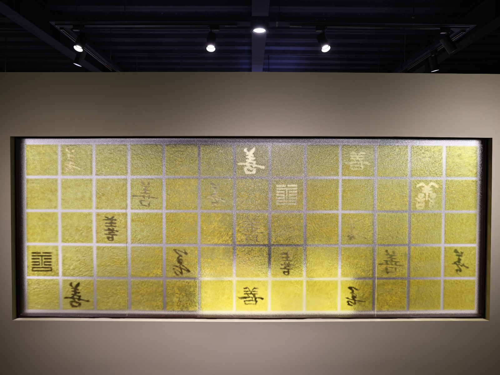 “善心”,由17片晶莹玻璃拼接而成,宛如一颗璀璨的心脏,跳动着170万滕州人的向善之心。它不仅是一件艺术作品,更是这座“中华善城”的精神象征,传递着温暖与正能量。装置两侧的《百善图》以彩色玻璃为画布,表面肌理纹路细腻,背面雕刻“善”字五体字形(篆、隶、楷、行、草),金箔点缀间尽显中华“善”文化的深厚底蕴。
