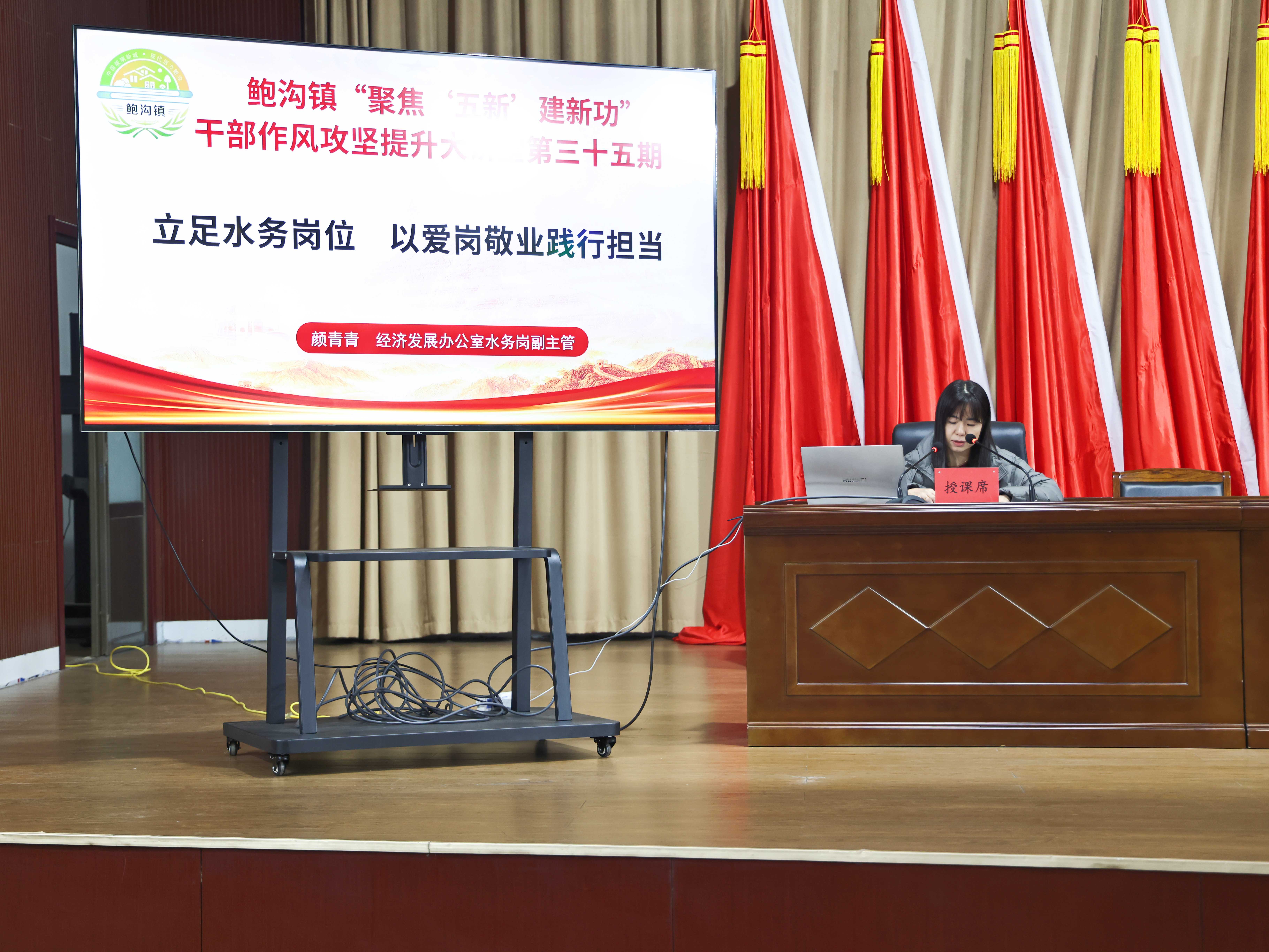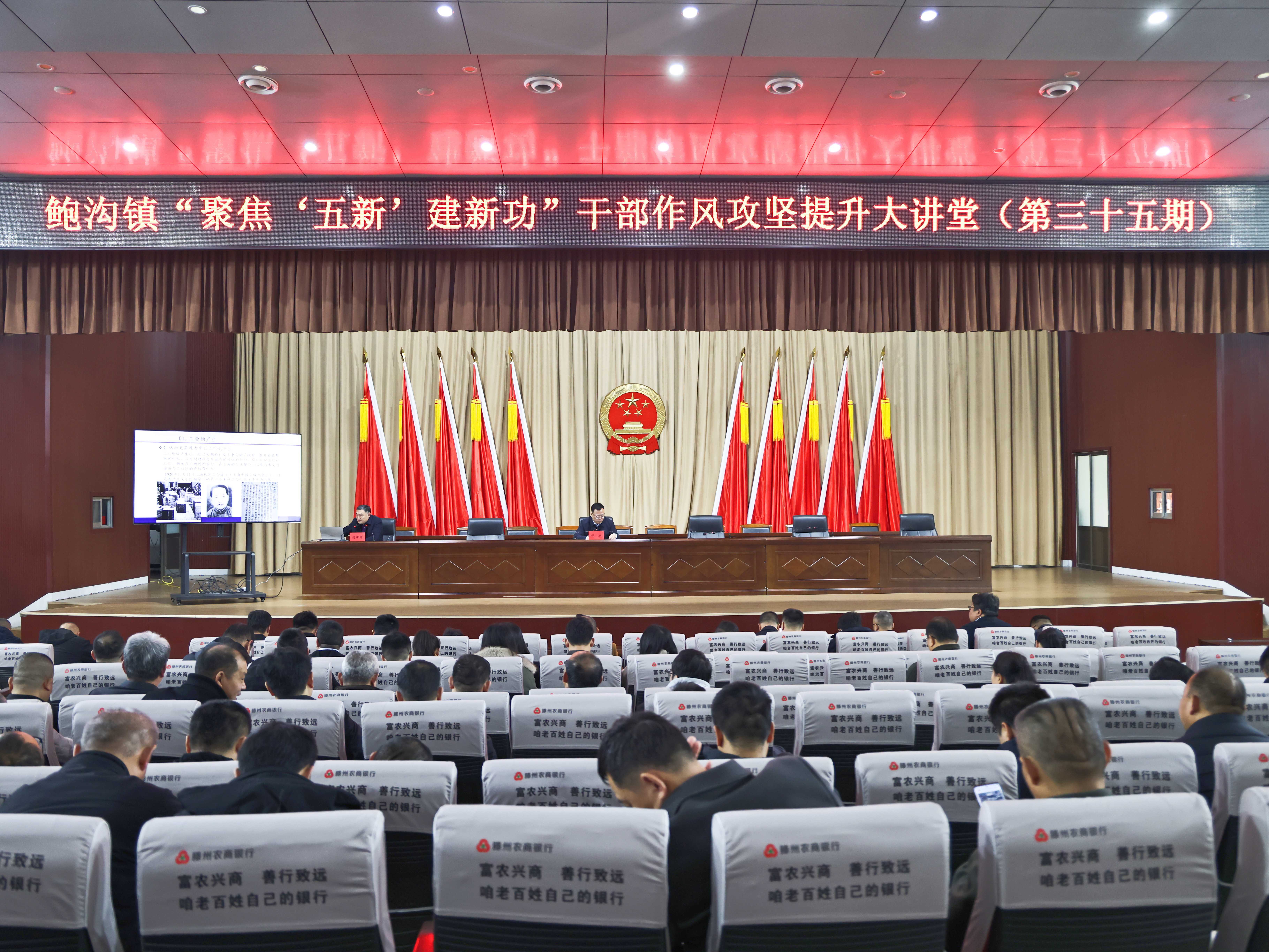 11月24日,鲍沟镇召开“聚焦‘五新’建新功”干部作风攻坚提升大讲堂(第三十五期)。会议由党委副书记邱杰主持,镇全体领导干部、全体机关干部、镇直部门负责人、各村主要负责人参加。