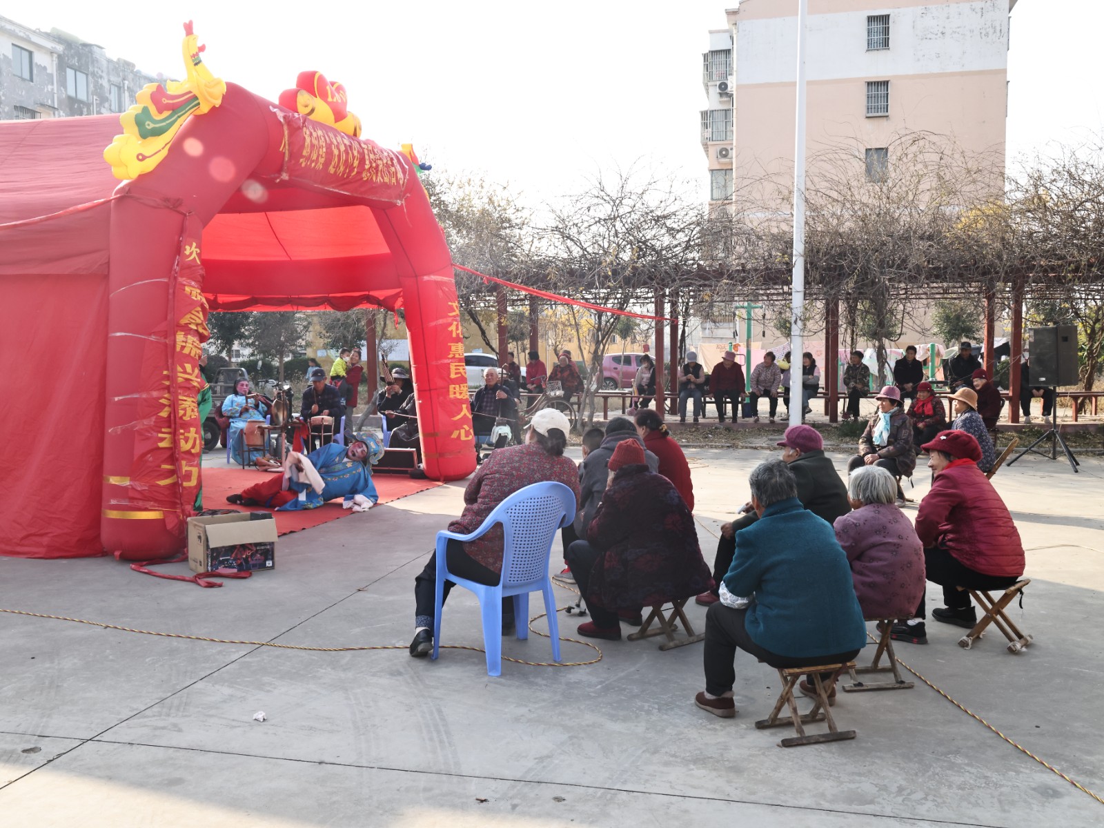 演出当天,各村文化广场早早便热闹起来。村民们带着期待陆续聚集,有的搬来小板凳抢占 “最佳观赏位”,有的呼朋引伴分享喜悦,老老少少围坐一堂,现场人头攒动、暖意融融。舞台上,演员们精神饱满、台风稳健,凭借精湛的技艺和饱满的热情投入表演,经典戏曲选段韵味悠长,精彩节目接连上演,赢得现场观众阵阵掌声与喝彩。