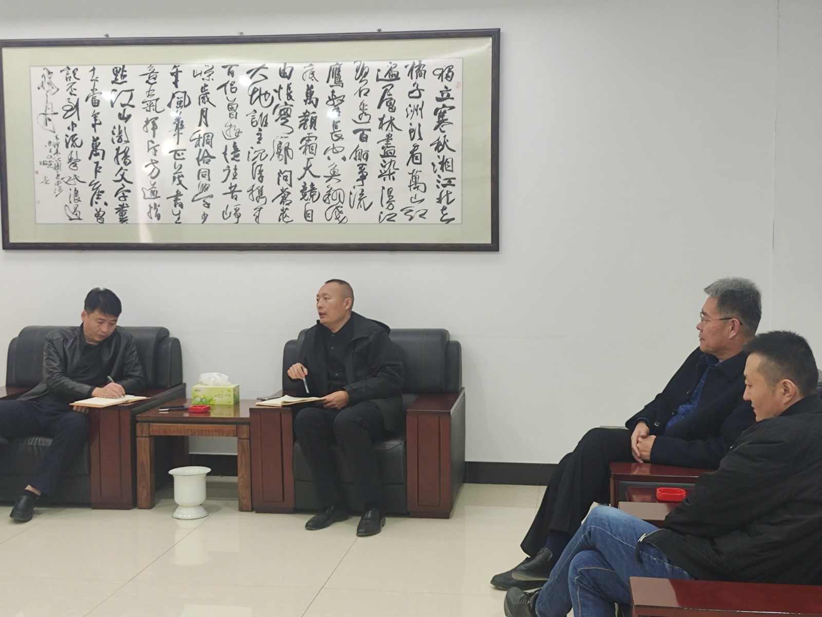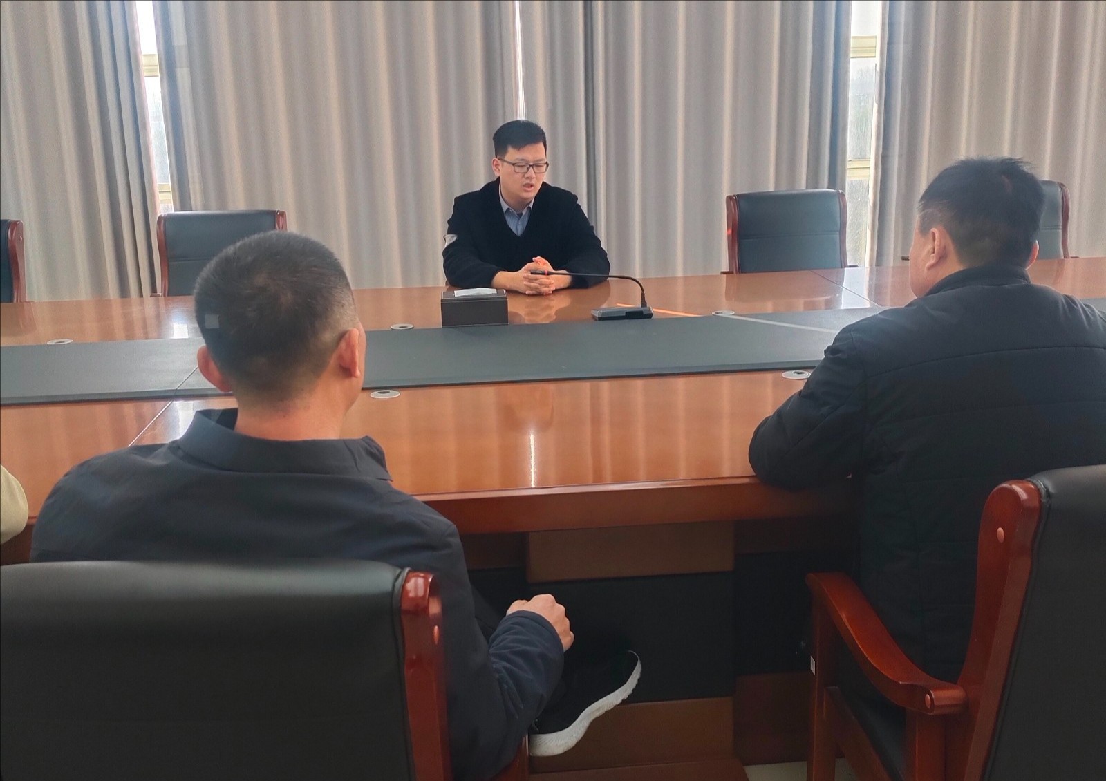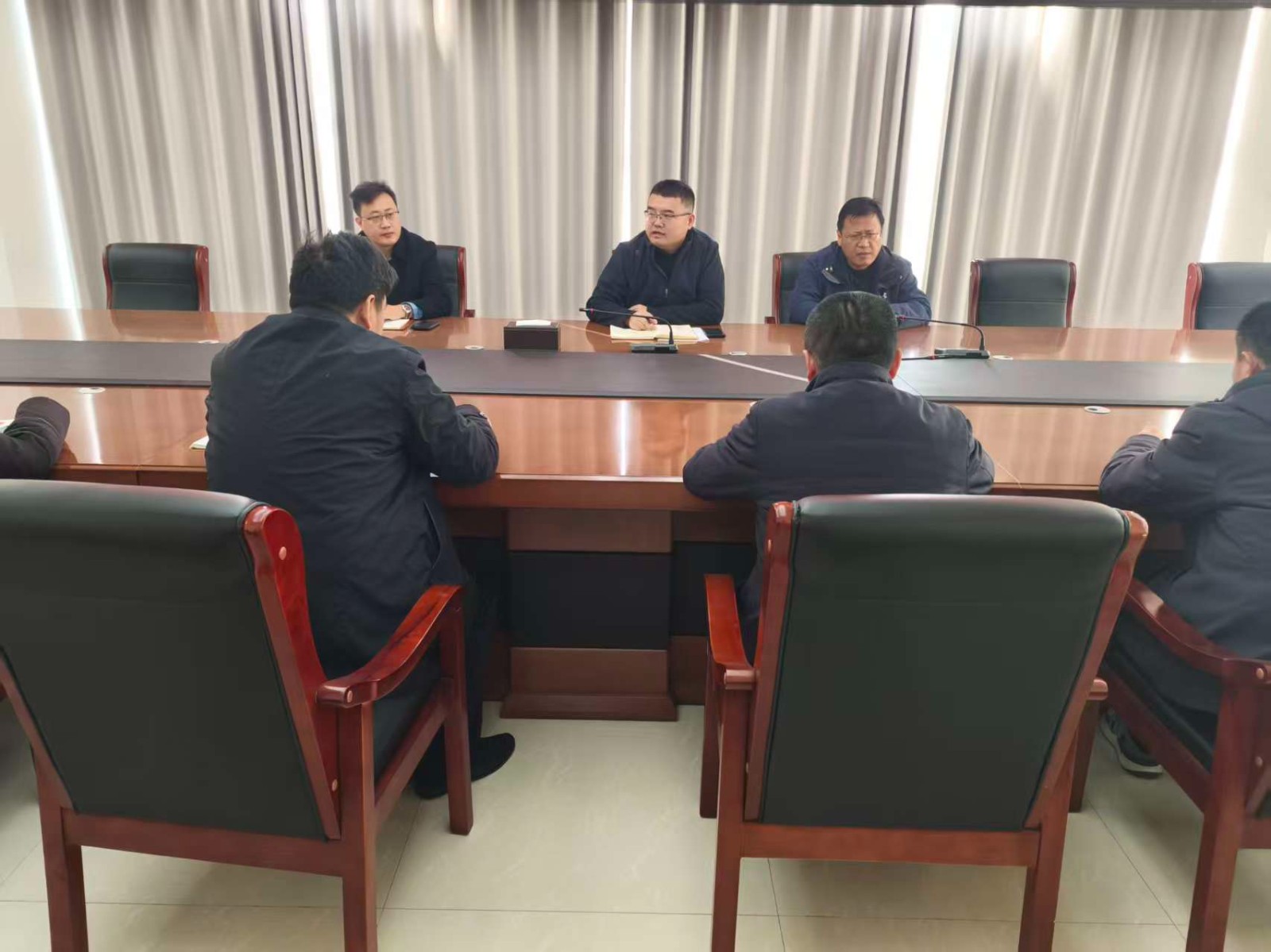 马启浩、范浩德、刘波波召集分管部门召开周例会