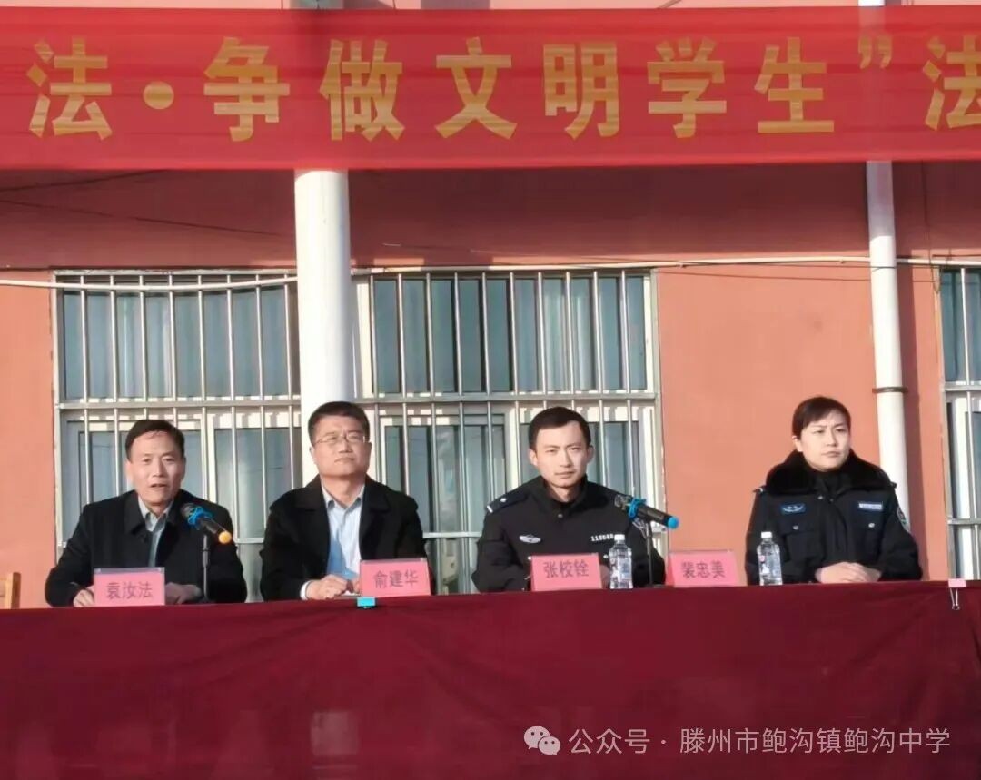 为增强学生法治意识,筑牢校园安全防线,12月5日,滕州市鲍沟镇鲍沟中学特邀属地派出所副所长张校铨到校开展“学法知法守法,争做文明学生”主题法制报告会。全校师生齐聚操场,在生动案例与互动体验中接受了一堂深刻的法治教育课。