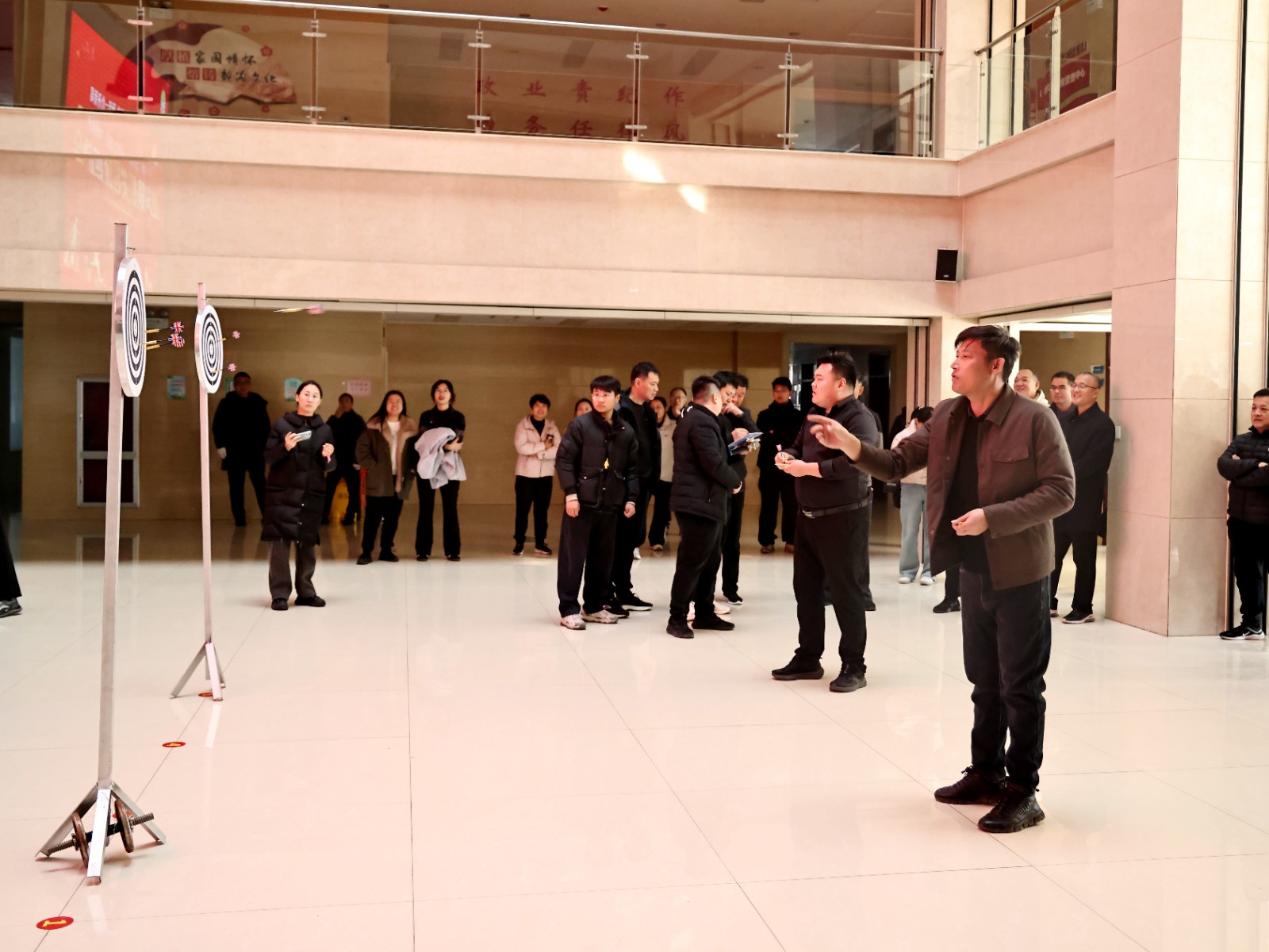 下午两点,运动会开幕式正式拉开帷幕。本次运动会精心设置了跳绳、拔河、两人三足、投壶、飞镖、企鹅漫步六大项目,兼具趣味性、协作性与竞争性,既考验个人技巧,更注重团队配合。拔河比赛现场最为激烈,参赛队员们紧握长绳,脚蹬地面,身体后倾,随着“一二、一二”的整齐号子奋力拉拽。麻绳紧绷如弓,红绸中线在两队间来回摇摆,赛场边的加油声、呐喊声震耳欲聋,充分展现了机关干部团结一心、奋勇争先的硬核力量。无论是肌肉紧绷的发力瞬间,还是胜利后的欢呼相拥,都诠释着“人心齐,泰山移”的协作真谛。投壶与飞镖项目则尽显“静中取巧”的智慧,选手们凝神屏息、瞄准目标,箭矢划出优雅弧线精准入壶,飞镖稳稳命中靶子,每一次成功都伴随着全场欢呼,展现了机关干部沉着冷静的处事素养。