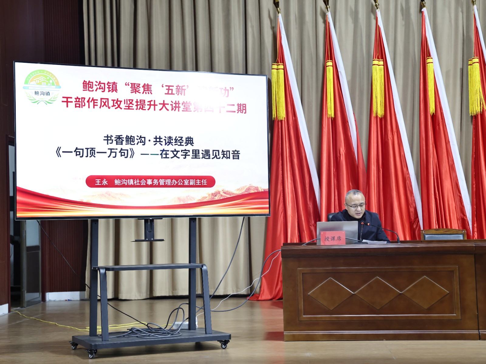 1月12日,鲍沟镇召开“聚焦‘五新’建新功”干部作风攻坚提升大讲堂(第四十二期)。会议由党委副书记、政法委员马启浩主持,镇全体领导干部、全体机关干部、镇直部门负责人、各村主要负责人参加。