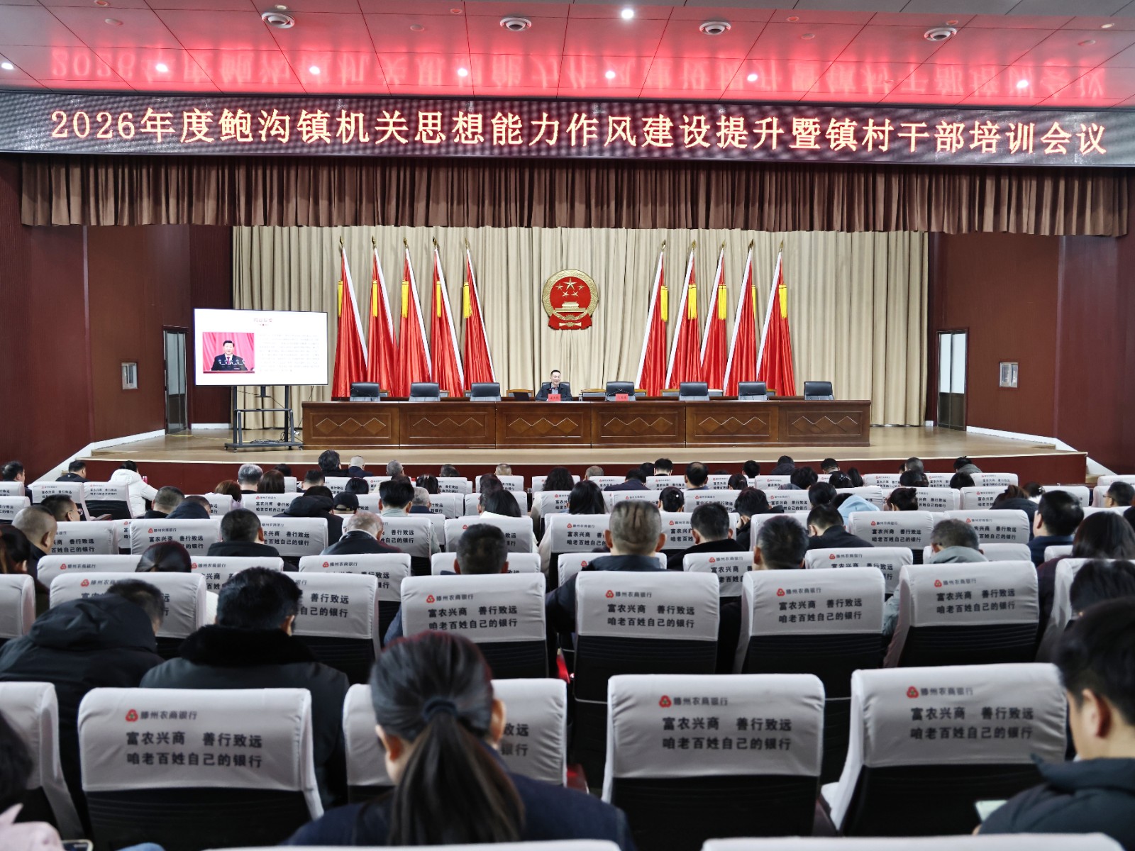 2月24日,为全面提升镇村干部的综合素质,推动鲍沟镇各项事业高质量发展提供坚实保障,鲍沟镇召开2026年度机关思想能力作风建设提升暨镇村干部培训,全体领导干部、全体机关干部、两级市派“第一书记”、各村支部书记、副书记、副主任参加会议。