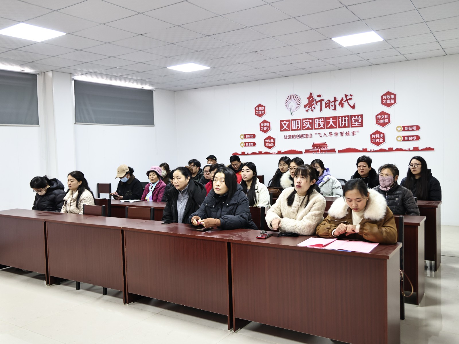 活动现场,新时代文明实践所立足镇域实际,组建由镇村干部、乡贤骨干、优秀志愿者组成的“新风宣讲团”,打破传统单一宣讲模式,推行“固定宣讲+流动宣讲”相结合的方式,增强宣讲的针对性和实效性。固定宣讲在新时代文明实践所集中开展,流动宣讲由宣讲团成员深入活动现场各村,主动对接群众、答疑解惑,切实拓宽宣讲范围,精准对接群众关切,让政策解读与文明理念送到群众身边。宣讲团摒弃生硬说教,以身边人讲身边事、身边事教育身边人为切入点,结合本地“零彩礼”“低彩礼”及简约婚礼典型案例,用通俗易懂的语言解读婚嫁从简相关政策和村规民约要求,拆解彩礼管控、宴席标准、婚车规范等具体举措,深刻阐释“婚姻重情感、婚礼重内涵”的核心理念,引导群众摒弃讲排场、比阔气的攀比心理,树立轻彩礼、简流程、重情义的文明婚恋观。同时,宣讲中融入家风建设、婚姻经营、法治宣传等内容,让群众在潜移默化中接受文明熏陶,同时开展答疑互动,宣讲团成员耐心回应群众关于简约婚礼筹备、礼仪规范等实际疑问,进一步强化群众认知,真正实现“宣讲一次、教育一片”。