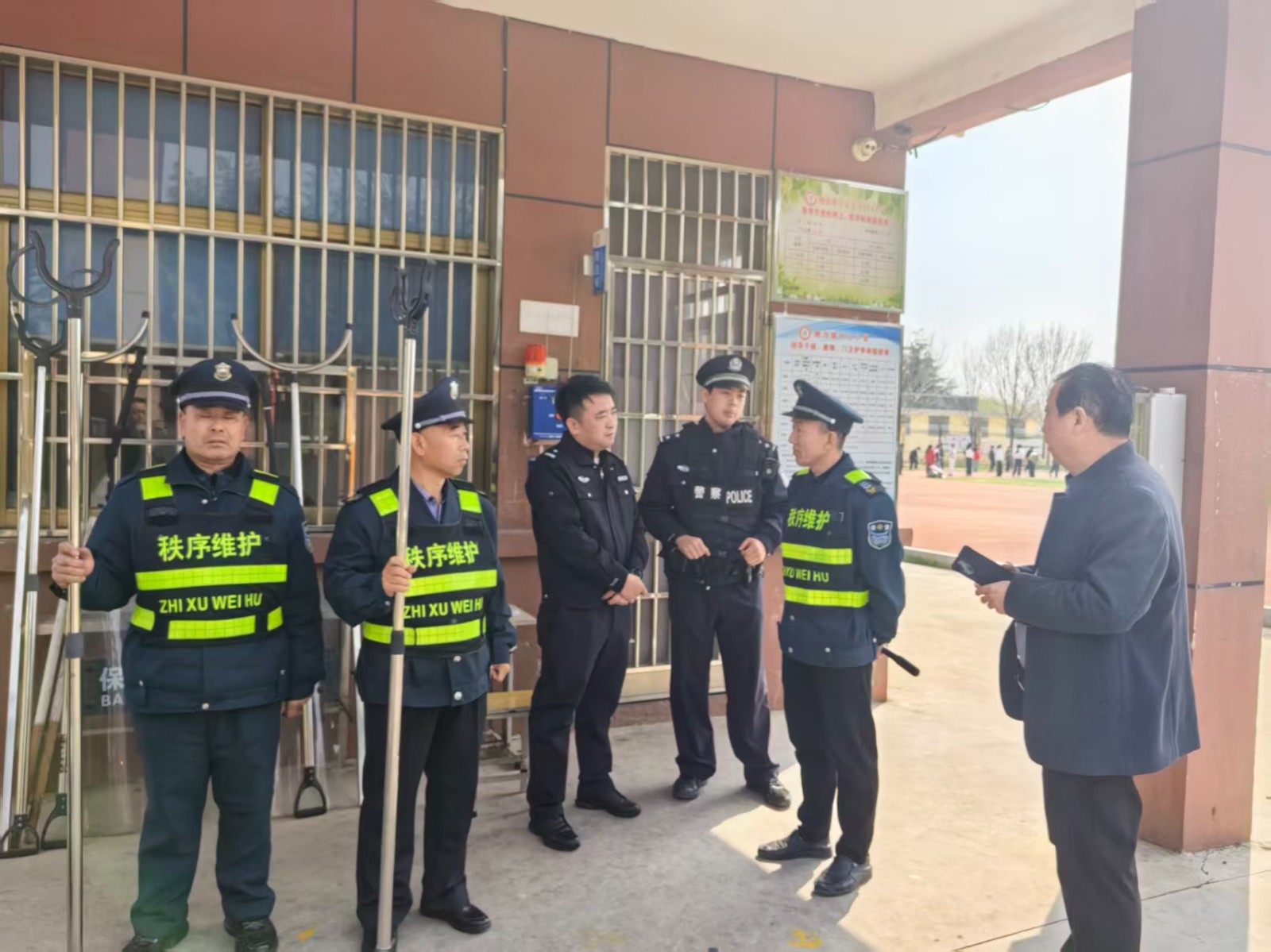 督导组对学校开展全方位、无死角检查。在校园安防方面,督导组仔细查看门卫室24小时值守情况、防暴器材配备及使用状态,现场测试一键式紧急报警装置运行效果,核查视频监控覆盖及留存情况,要求学校严格落实封闭式管理,严把外来人员、车辆入校登记关,筑牢校园安全第一道防线。